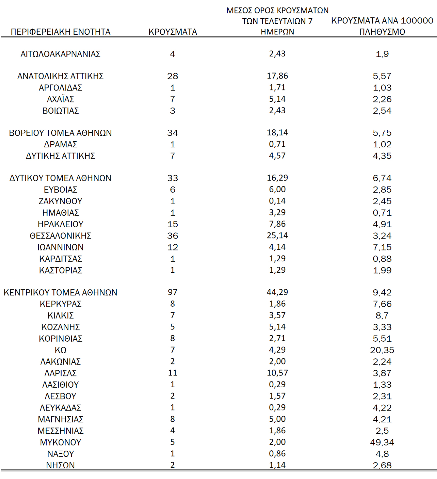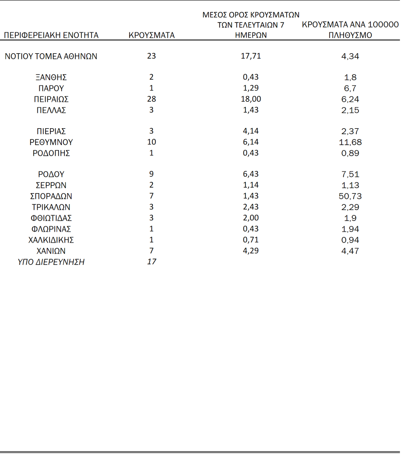 Η κατανομή των 481 νέων εγχώριων κρουσμάτων ανά Περιφερειακή Ενότητα: