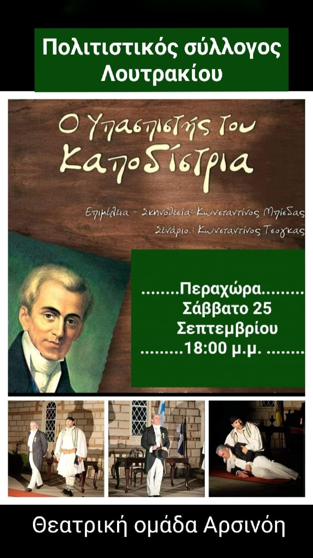 Σάββατο 25 Σεπτεμβρίου 2021 | Πνευματικό Κέντρο Περαχώρας | ώρα έναρξης: 18:00 | Διοργάνωση: Πολιτιστικός Σύλλογος Λουτρακίου