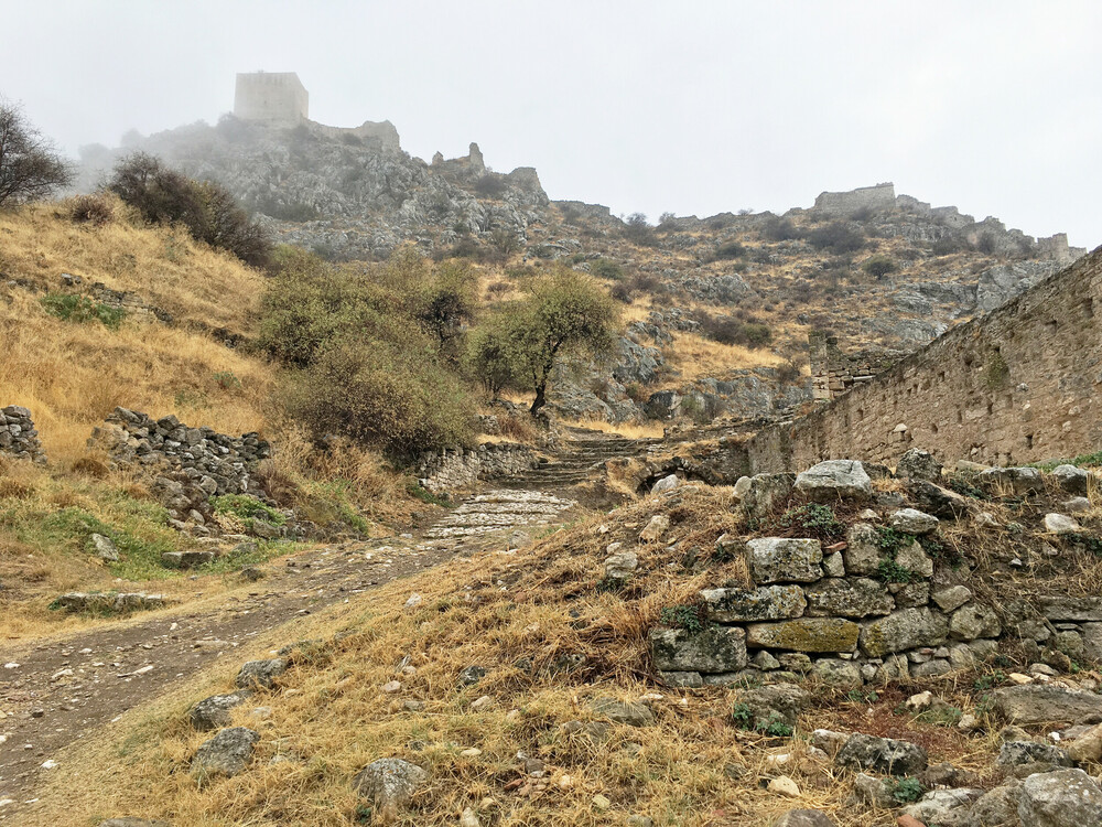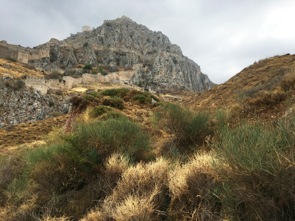 Στην αρχαιότητα η Ακροκόρινθος συνδεόταν με την πόλη και το λιμάνι Λεχαίου με τα Μακρά Τείχη.