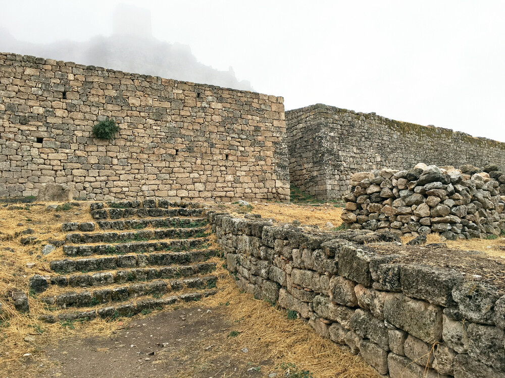 Η οχύρωση εξασφαλίζεται με σύστημα τριών περιβόλων, που χωρίζονται μεταξύ τους με τείχη, ενισχυμένα με πύργους και προμαχώνες. Τρεις επιβλητικοί πυλώνες οδηγούν στο εσωτερικό, όπου υπάρχουν ερείπια κτισμάτων όλων των εποχών. Διακρίνονται τμήματα του τείχους της κλασικής αρχαιότητας. Ανοικοδόμηση και προσθήκες νέων οχυρώσεων της βυζαντινής περιόδου, εκτεταμένα οχυρωματικά έργα της εποχής της Φραγκοκρατίας και της Ενετοκρατίας. Επεμβάσεις κυρίως στο εσωτερικό έγιναν επί Τουρκοκρατίας.