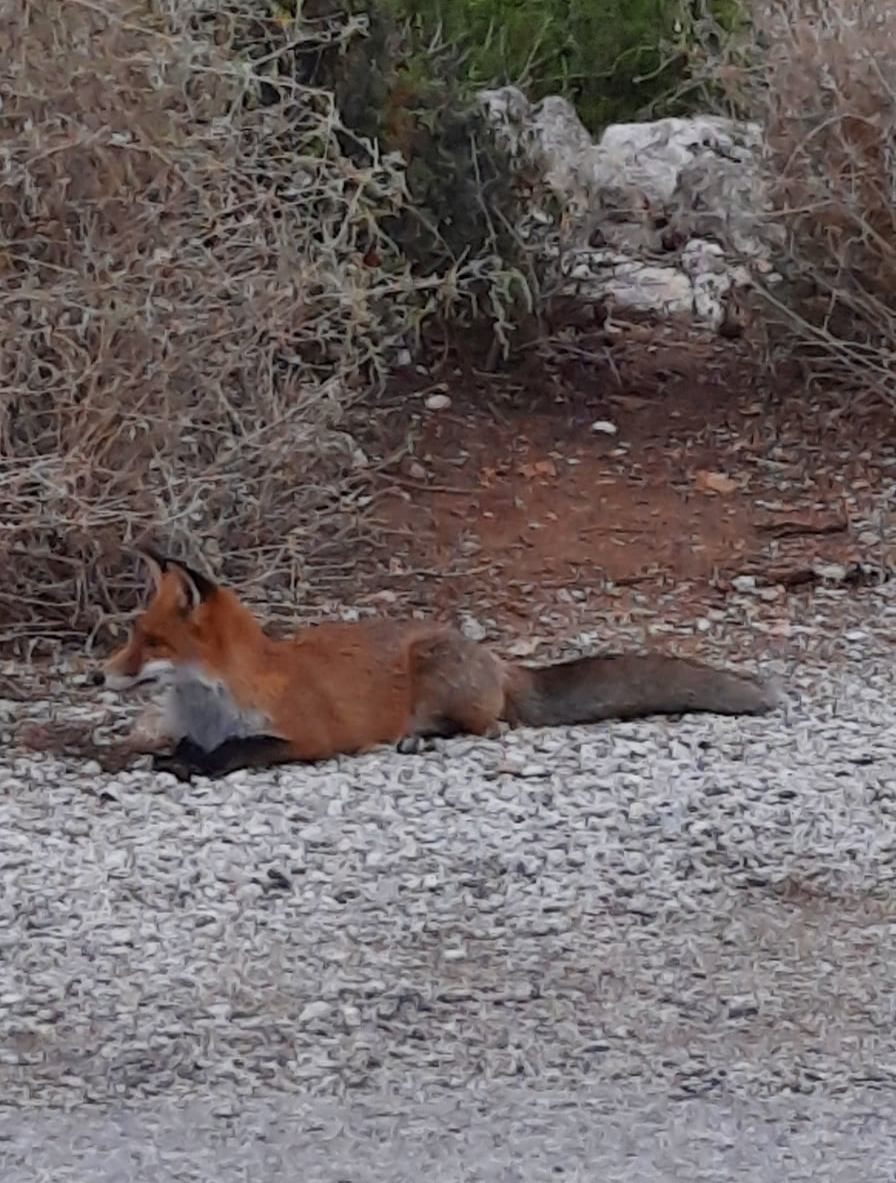 Συναντούν έναν ακόμη επισκέπτη, αλλά από το ζωικό βασίλειο. Ένα πανέμορφο αλεπουδάκι, αρκετά εξοικειωμένο με τους ανθρώπους, περιφέρεται στην περιοχή και ποζάρει για φωτογράφιση.