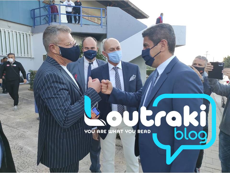 παρουσία του Υφυπουργού Αθλητισμού κ. Λευτέρη Αυγενάκη, του Δημάρχου Λουτρακίου κ. Γιώργου Γκιώνη, του Προέδρου της SportCamp AE (φορέας υλοποίησης των αγώνων) κ. Σπύρου Καραβούλη,του Αντιπεριφερειάρχη Κορινθίας κ. Αναστάσιου Γκιολή, του Αντιδημάρχου Αθλητισμού του Δήμου Λουτρακίου κ. Σάκη Παπαθανασίου, των αντιδημάρχων Λουτρακιόυ κ.κ. Τάσου Σακελλαρίου και Σωτήρη Πέρρα, του δημοτικού συμβούλου Λουτρακίου κ. Ιωάννη Γλυκοφρύδη, του Προέδρου του Επιμελητηρίου Κορινθίας κ. Παναγιώτη Πιτσάκη των θεματικών Αντιπεριφερειαρχών κ.κ. Κόρκα και Βυτινιώτη, των περιφερειακού συμβούλου κ. Σωτήρη Μουρίκη, του αντιδημάρχου Κορινθίων κ. Δημήτρη Μπίτζιου, και πλήθους δημοσιογράφων.