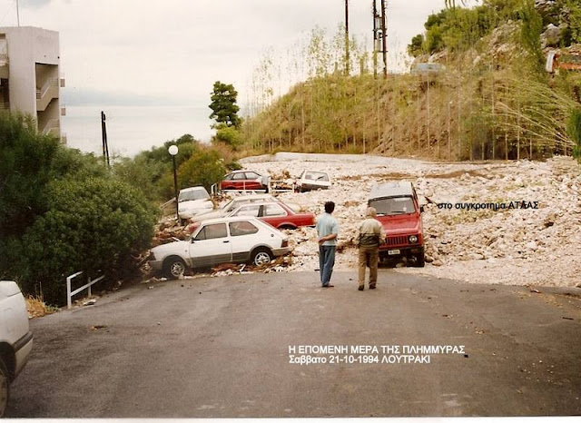 Παρακάτω ακολουθούν 13 φωτογραφίες που βρήκα στο σάιτ του Κυνηγετικού Συλλόγου Λουτρακίου και αποτυπώνουν ένα μικρό μέρος μόνο της εικόνας της πόλης την επόμενη μέρα.
