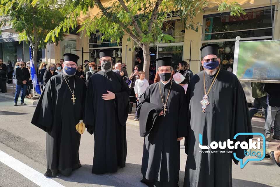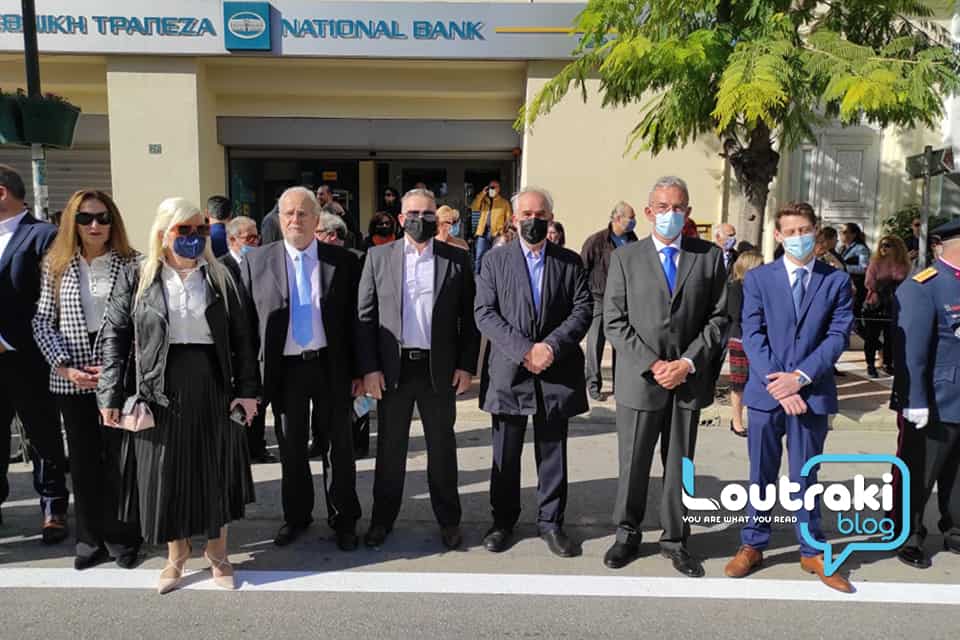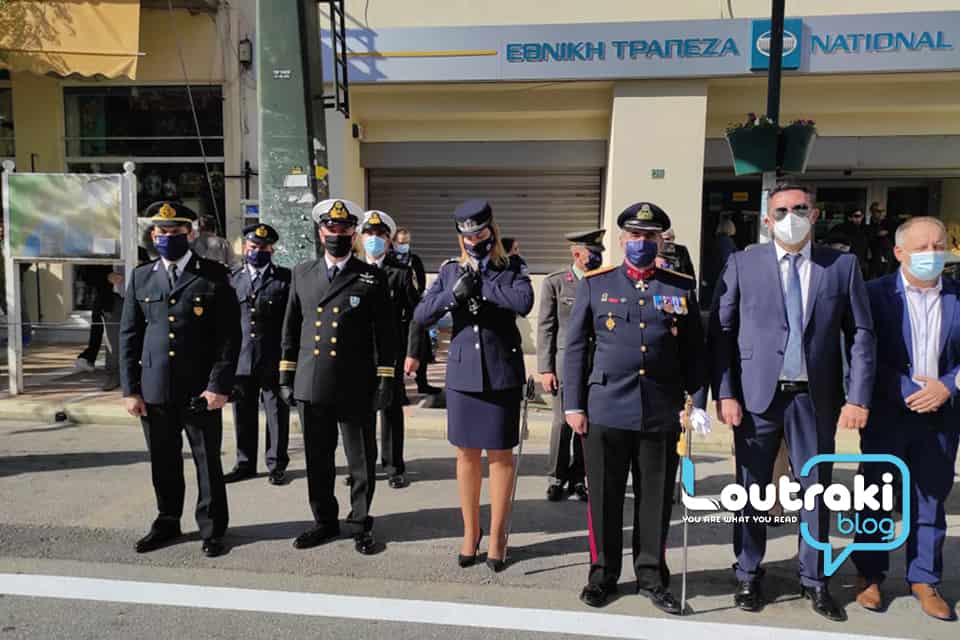 Προηγούμενως τελέστηκε κατάθεση στεφάνων στο Ηρώο των πεσόντων στο παραλιακό πάρκο Λουτρακίου, παρουσία της πολιτικής, πολιτειακής και στρατιωτικής ηγεσίας!