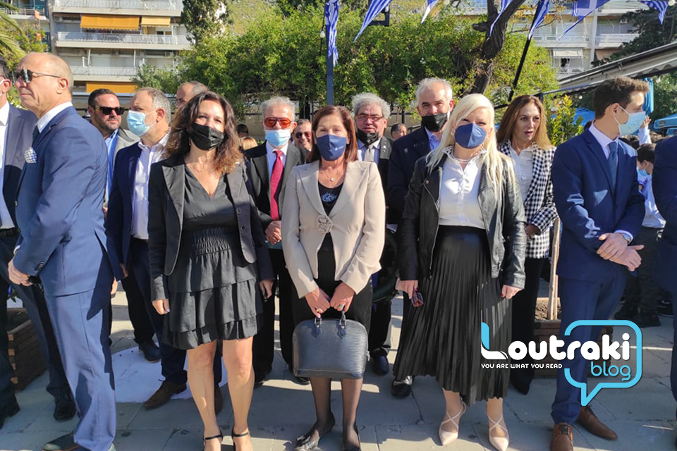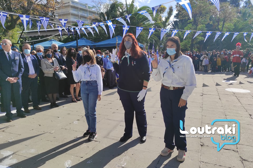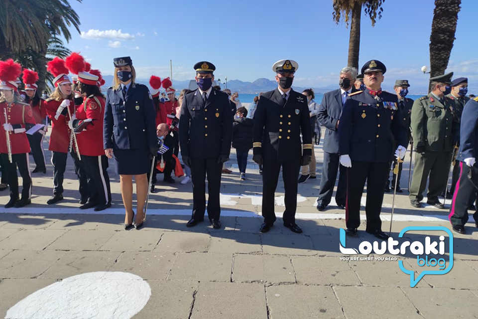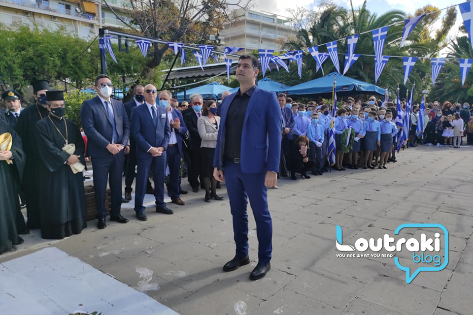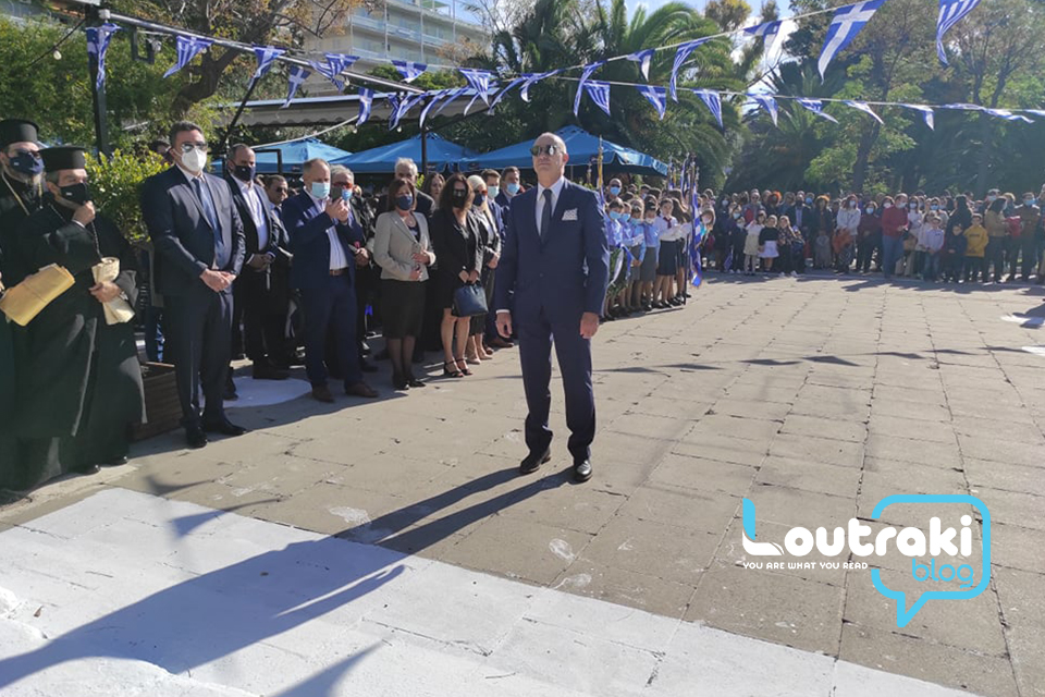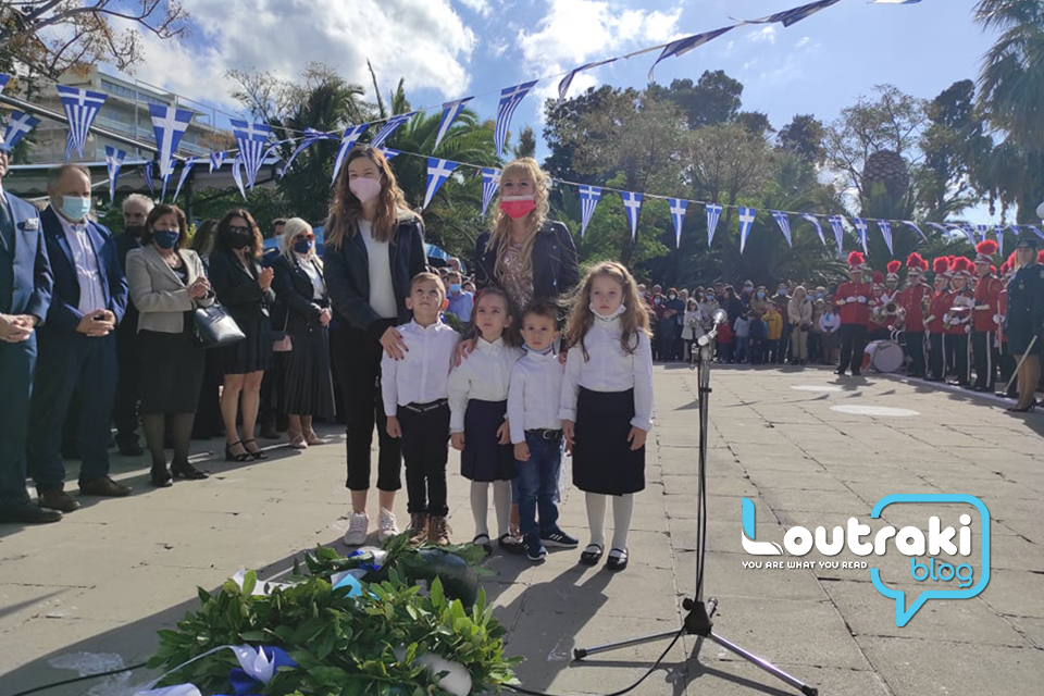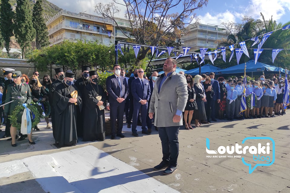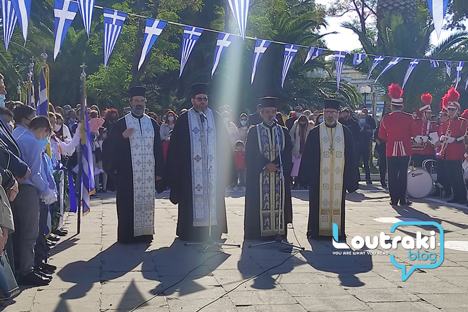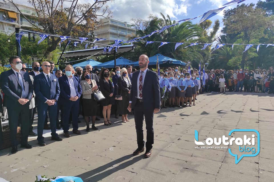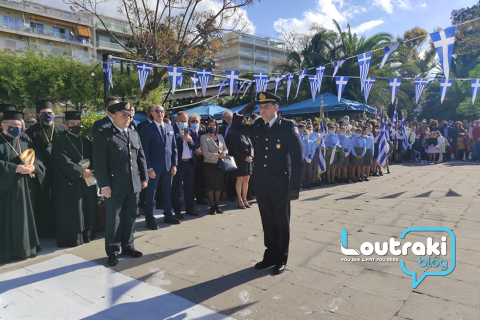 ‘Ετσι και στο Λουτράκι, πριν την έναρξη της παρέλασης, κατατέθηκαν στεφάνια στο Ηρώο των πεσόντων στο παραλιακό πάρκο Λουτρακίου, εκ μέρους της πολιτικής, πολιτειακής και στρατιωτικής ηγεσίας , παράλληλα έγινε η ανάκρουση του εθνικού ύμνου,ενώ κρατήθηκε ενός λεπτού σιγή στη μνήμη των ηρώων του 1940.