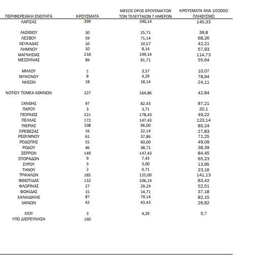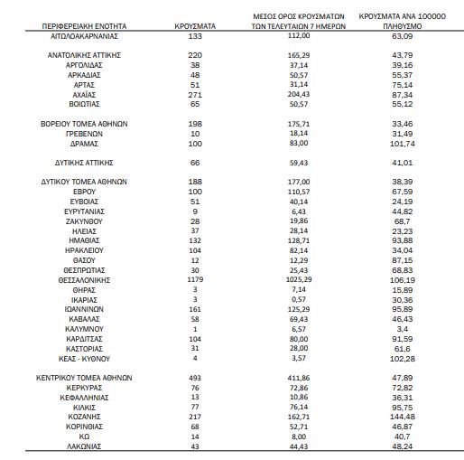 Τα κρούσματα σε ολόκληρη τη χώρα