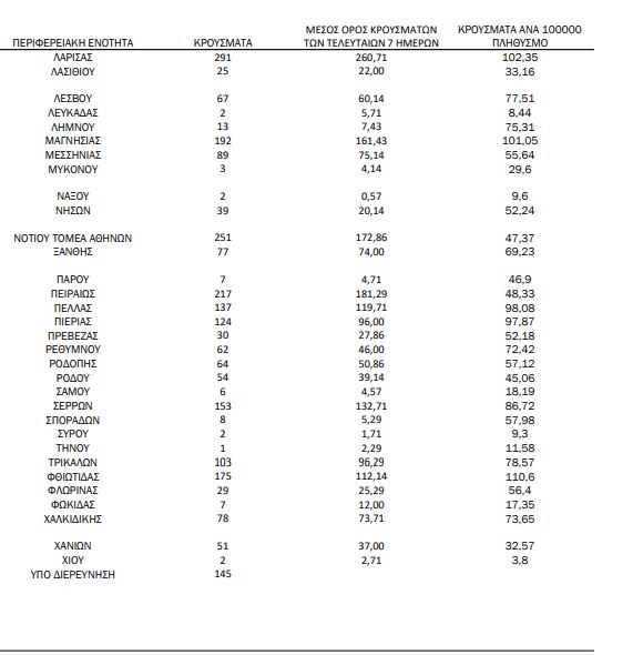 Ειδικότερα στην Αττική τα κρούσματα κατανέμονται ως εξής: