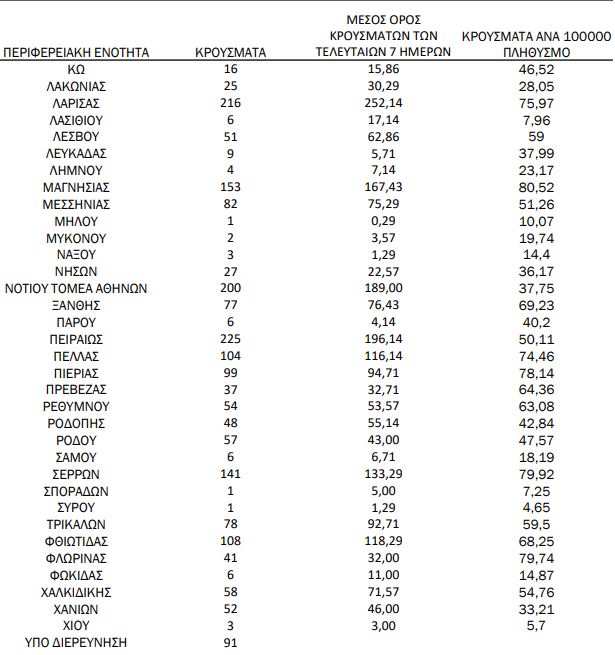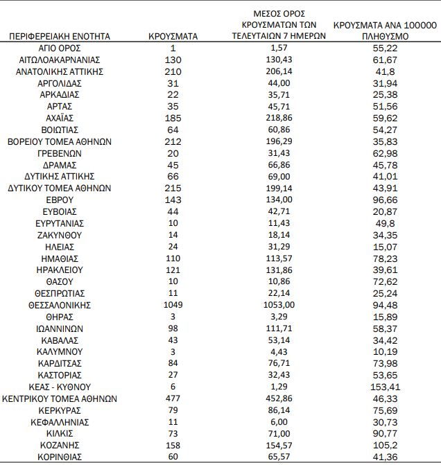Αναλυτικά η διασπορά των νέων κρουσμάτων σήμερα στην υπόλοιπη Ελλάδα