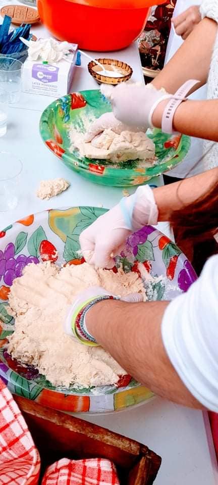 • Εθελόντριες του Μουσείου παρουσίασαν στους μαθητές τη διαδικασία ζυμώματος του ψωμιού με τον παραδοσιακό τρόπο και έδωσαν στα παιδιά τη δυνατότητα να εμπλακούν σ’ αυτή.