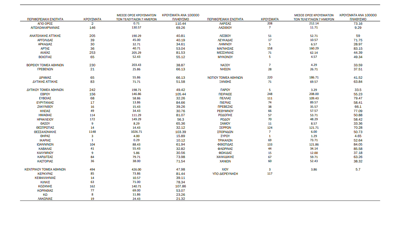 Αναλυτικά, σήμερα καταγράφηκαν στην Π.Ε. Αργολίδας 39, στην Π.Ε. Αρκαδίας 30, στην Π.Ε. Κορινθίας 77, στην Π.Ε. Λακωνίας 19 και στην Π.Ε. Μεσσηνίας 71.