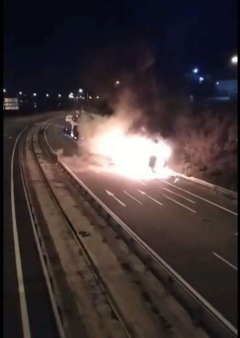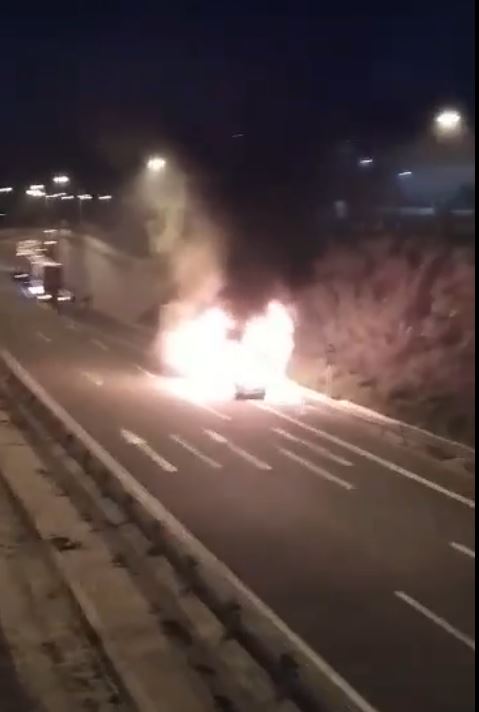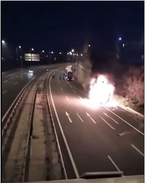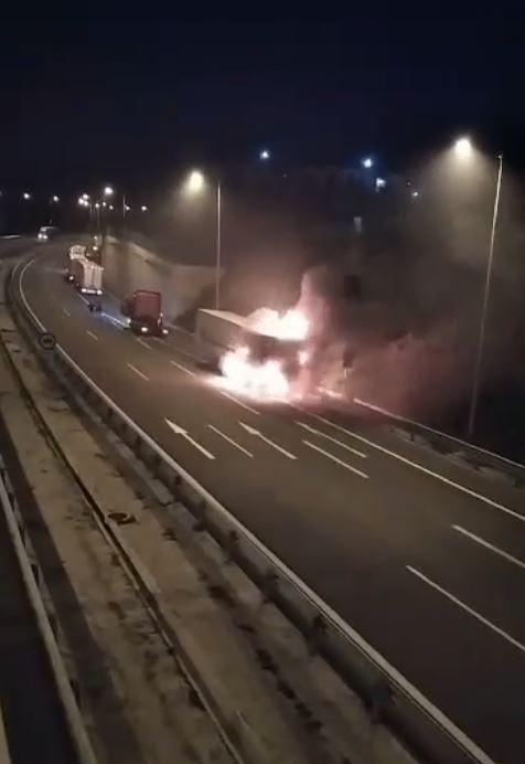 Νταλίκα πήρε φωτιά εν κινήσει στον Κόμβο του Κιάτου (φωτο)
