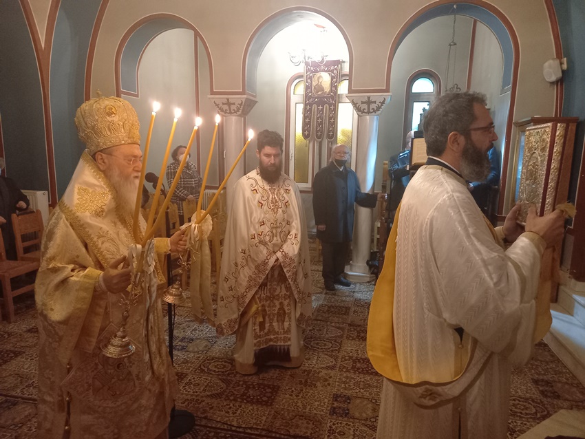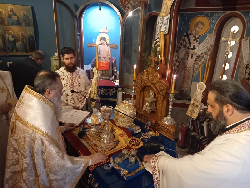 Στο Μητροπολιτικό Παρεκκλήσιο της Αγίας Φωτεινής της Σαμαρείτιδος στην Κόρινθο, λειτούργησε σήμερα Τρίτη, 18 Ιανουαρίου 2022, ημέρα μνήμης των Αγίων Ιεραρχών Αθανασίου του Μεγάλου και Κυρίλλου, Πατριαρχών Αλεξανδρείας, ο Σεβασμιώτατος Μητροπολίτης μας κ. Διονύσιος πλαισιούμενος από τους εορτάζοντες Πανοσ. Αρχιμ. π. Αθανάσιο Πέζο, Ηγούμενο της Ι Μονής Αγίου Γεωργίου Φενεού, Αιδεσ. Πρωτ/ρο π. Αθανάσιο Κοντογιάννη και τους Διακόνους π. Δαμασκηνό Γεννηματά και π. Γεράσιμο Λάμπο.