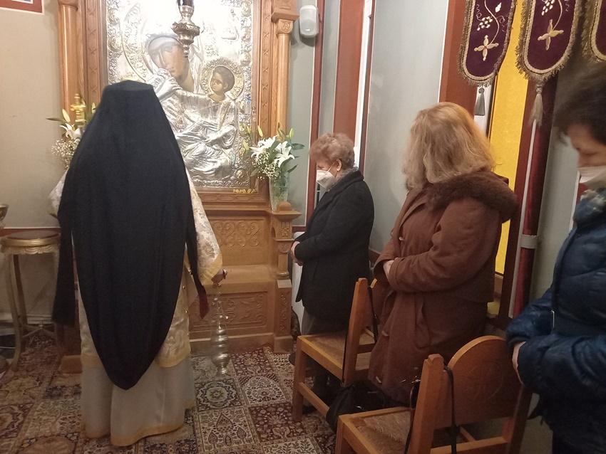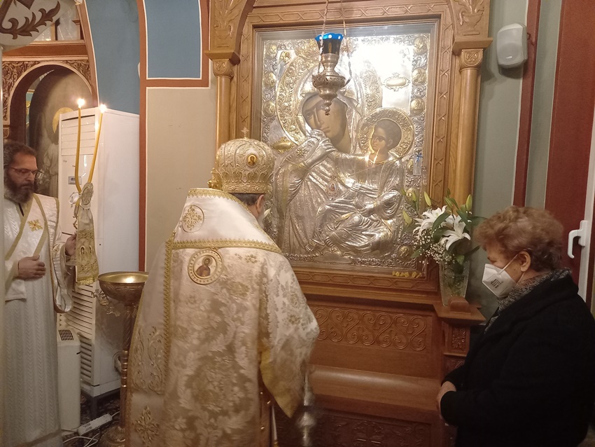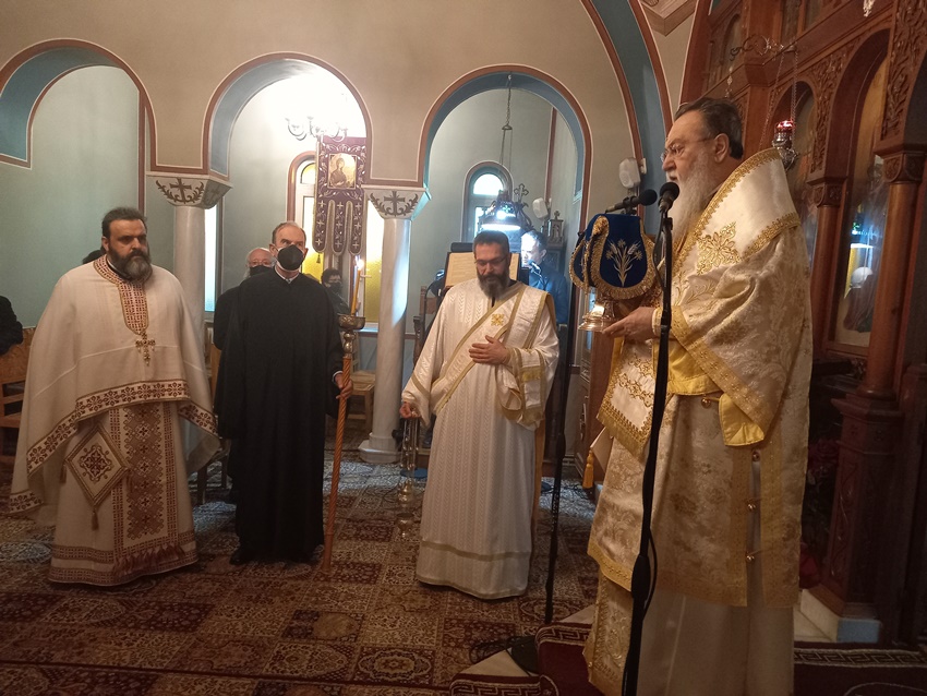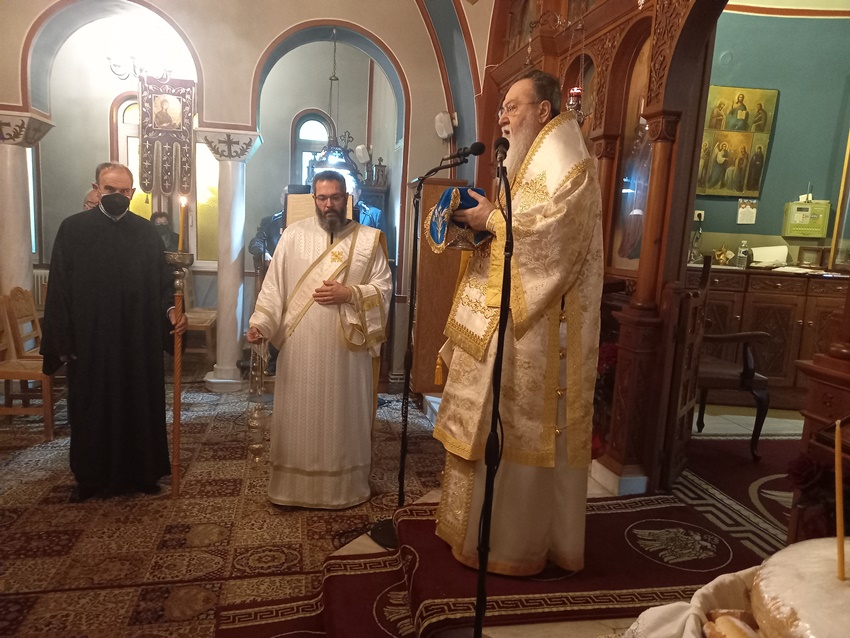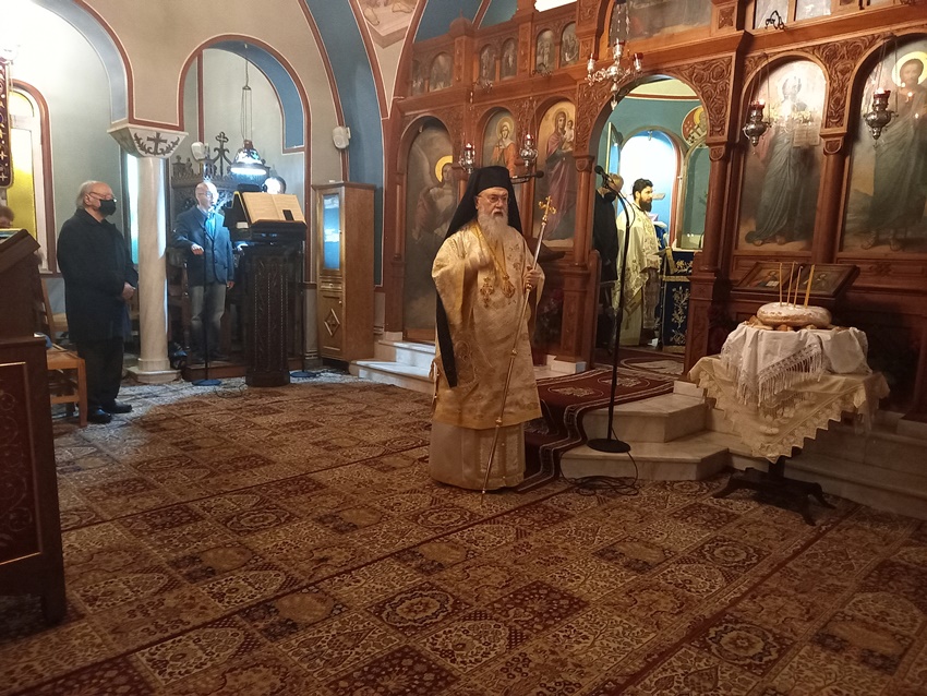 Ολοκληρώνοντας, ευχήθηκε καταλλήλως στον εκτελούντα χρέη Εφημερίου του Μητροπολιτικού Παρεκκλησίου της Αγίας Φωτεινής και Ηγούμενο της Ι. Μονής Αγίου Γεωργίου Φενεού Πανοσ. Αρχιμ. π. Αθανάσιο Πέζο και στον συνεργάτη του στα Γραφεία της Ι. Μητροπόλεως μας και υπεύθυνο του Γραφείου Γάμων Αιδεσ. Πρωτ/ρο π. Αθανάσιο Κοντογιάννη για τα ονομαστήριά τους. Ανακοίνωσε δε ότι την προσεχή Πέμπτη, 20 Ιανουαρίου 2022 και ώρα 20:30, θα τελεσθεί Ι. Αγρυπνία στο Μητροπολιτικό Παρεκκλήσιο της Αγίας Φωτεινής προς τιμήν της Ι. Εικόνος της Παναγίας της Παραμυθίας της Ι. Μεγίστης Μονής του Βατοπαιδίου, ακριβές αντίγραφο της οποίας φυλάσσεται στο Ιερό Παρεκκλήσιο.