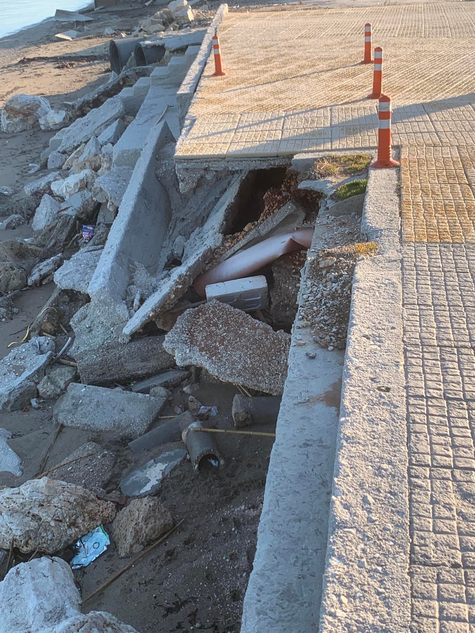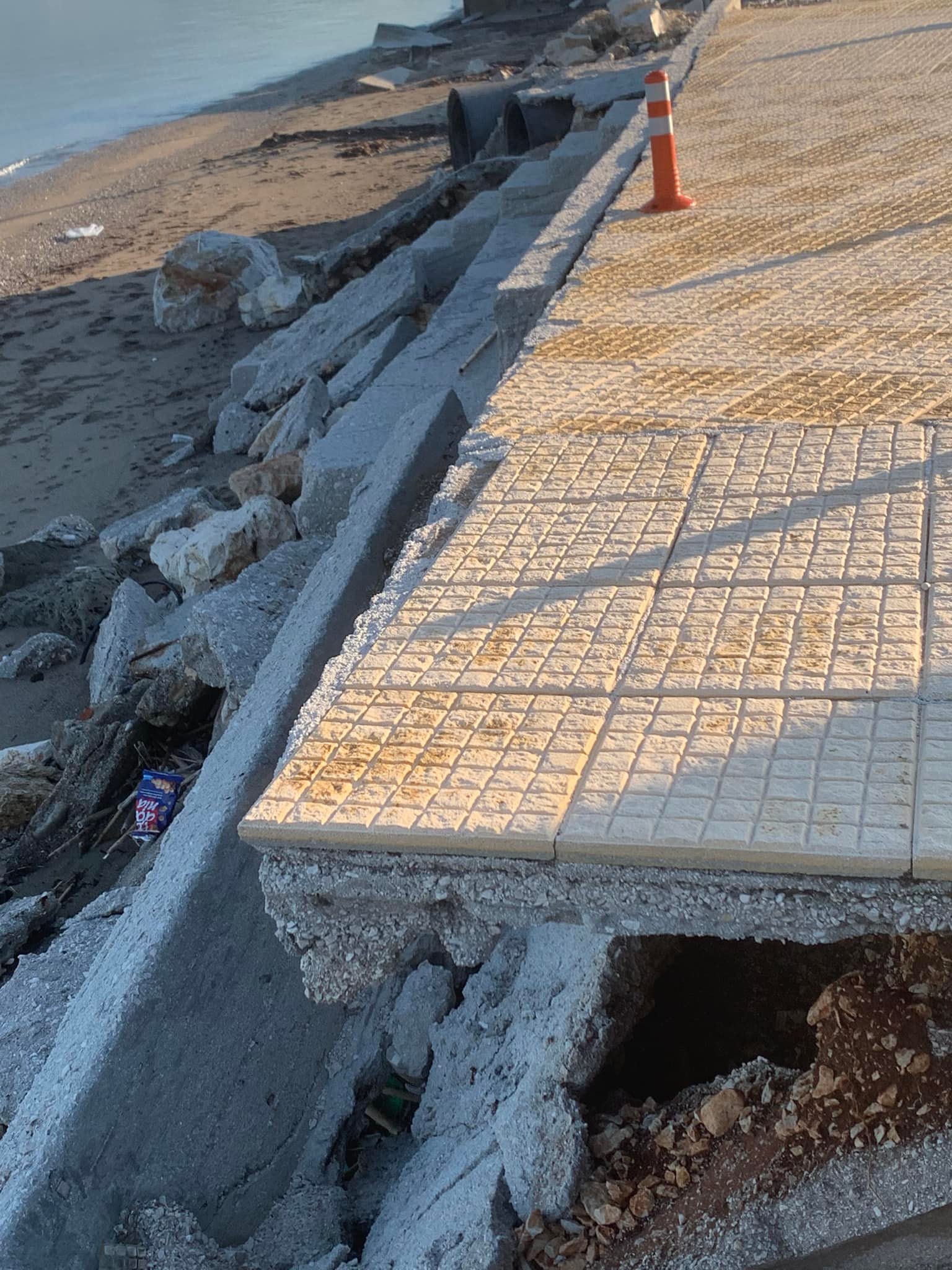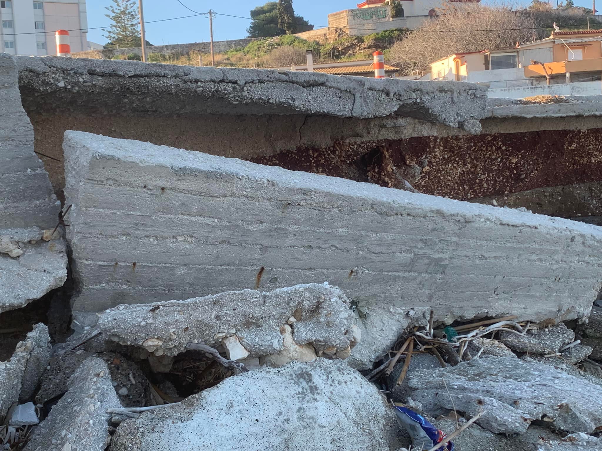 Το έδαφος κάτω από το πεζοδρόμιο, όπως μαρτυρούν οι παρακάτω φωτογραφίες που αλιεύσαμε στο facebook, είναι σαθρό και άκρως επικίνδυνο για τη δημόσια ασφάλεια, αφού μπορεί ανά πάσα στιγμή να υποχωρήσει.