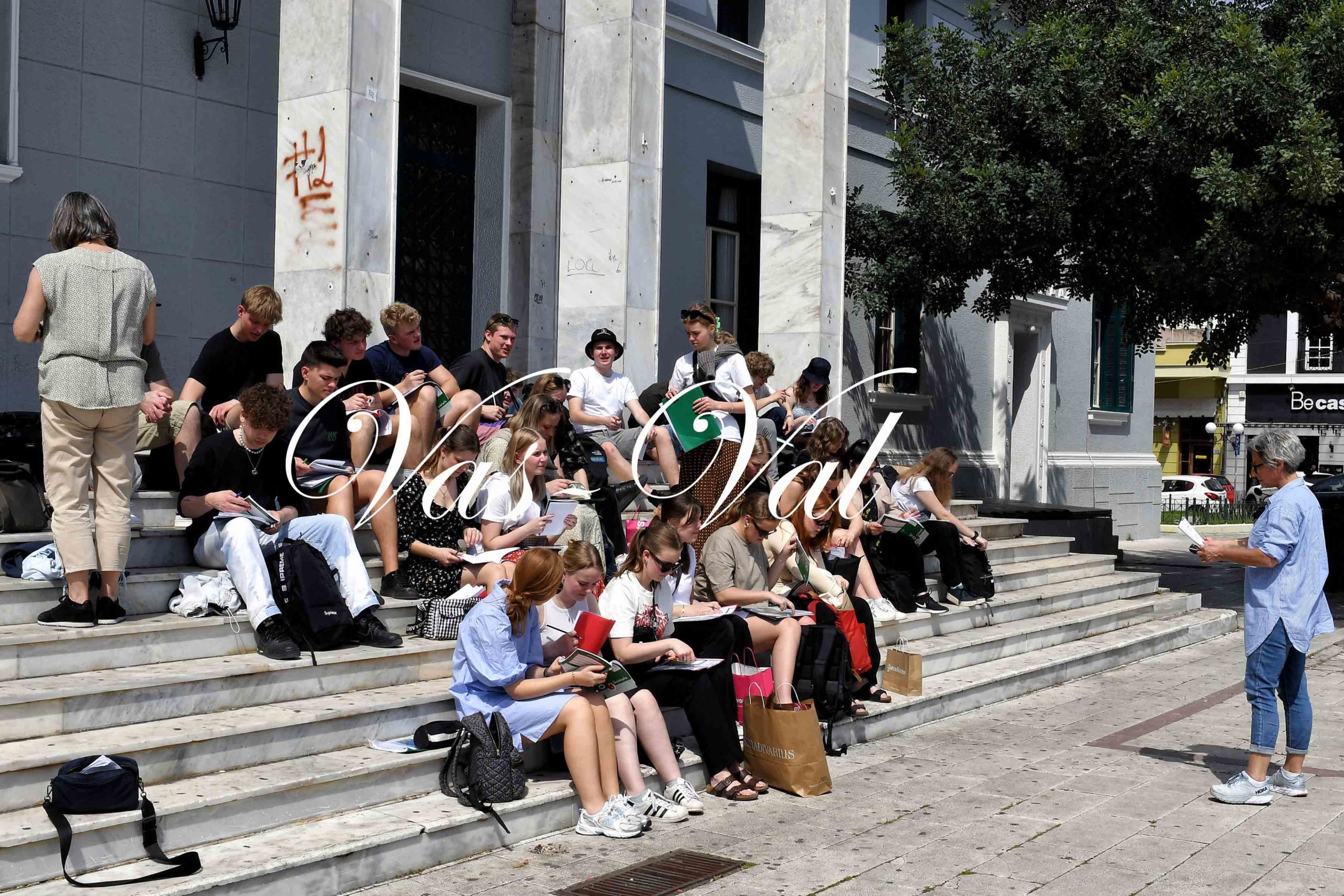 Σαν τε χελιδόνια, ήρθαν και οι πρώτοι τουρίστες στην Κορινθίας. Οι Δανοί, μάλλον εντυπωσιάστηκαν από το νεοκλασσικό κτίριο του Δικαστικού Μεγάρου και έβγαλαν φωτογραφίες