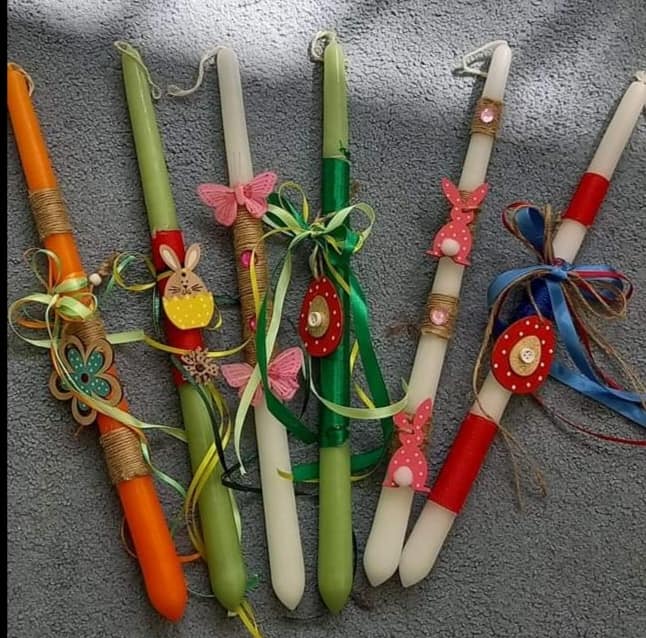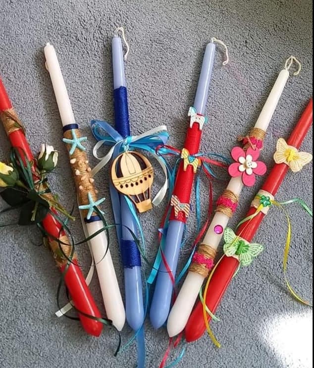 Οι χειροποίητες λαμπάδες είναι φτιαγμένες με περίσσεια προσοχή και μεράκι από τις μαμάδες του ΦΑΣΜΑ .