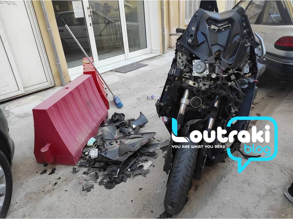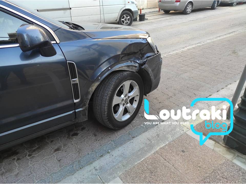 Τροχαίο ατύχημα σημειώθηκε πριν δύο μέρες στο Λουτράκι, στη συμβολή των οδών Δαμασκηνού και Εθνικής Αντιστάσeως.