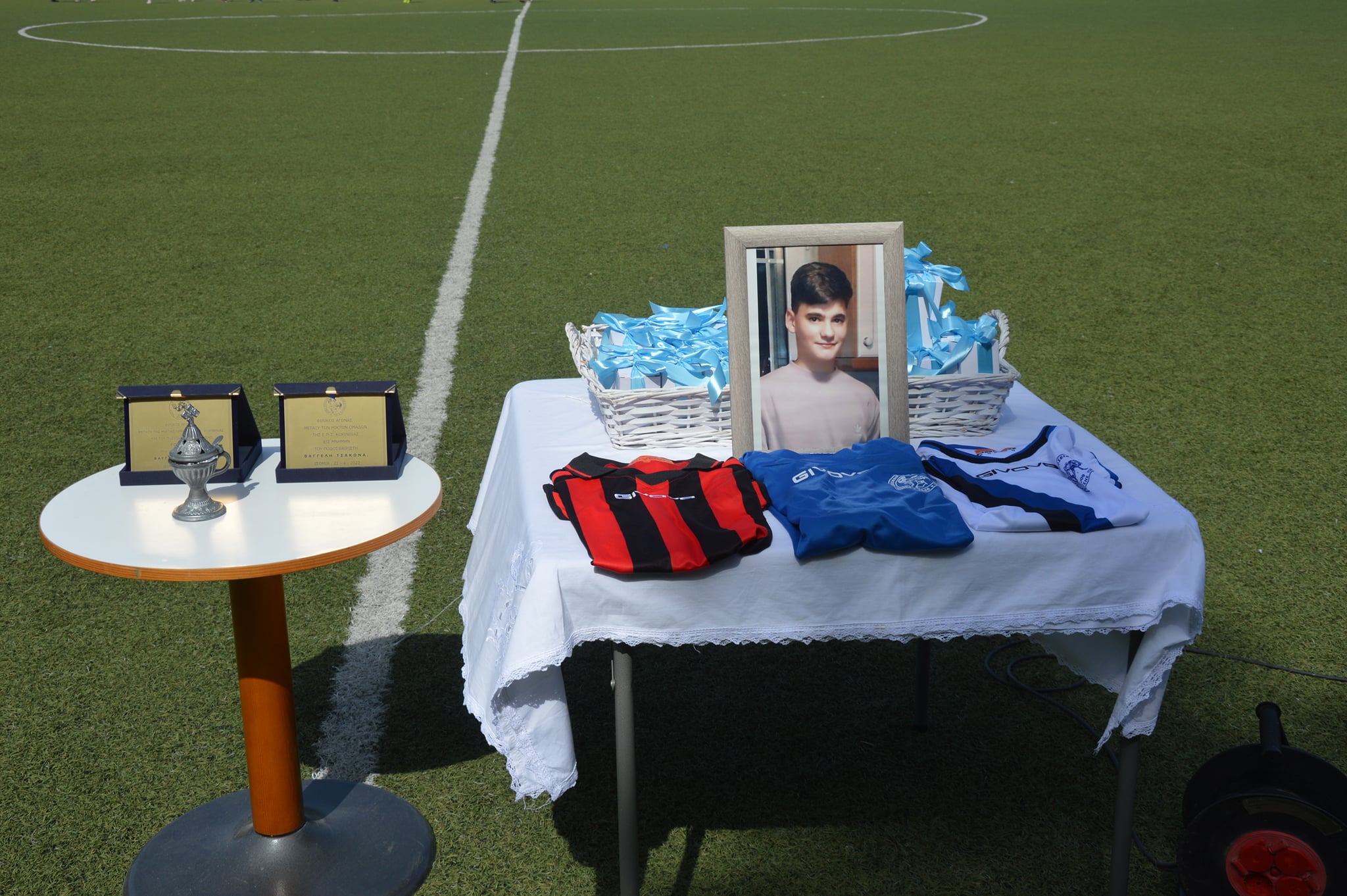 Δόθηκαν αναμνηστικά σε όλα τα παιδιά μεταφέροντας το μήνυμα και την ελπίδα ότι τα παιδιά ξέρουν να τιμούν , όχι με τις φανέλες των ομάδων που παρέδωσαν στους γονείς, ούτε τις αναμνηστικές πλακέτες αλλά με την σκέψη , την παρουσία και την προσευχή για την ψυχή του νέου αυτού παιδιού που έφυγε τόσο πρόωρα και τόσο άδικα.