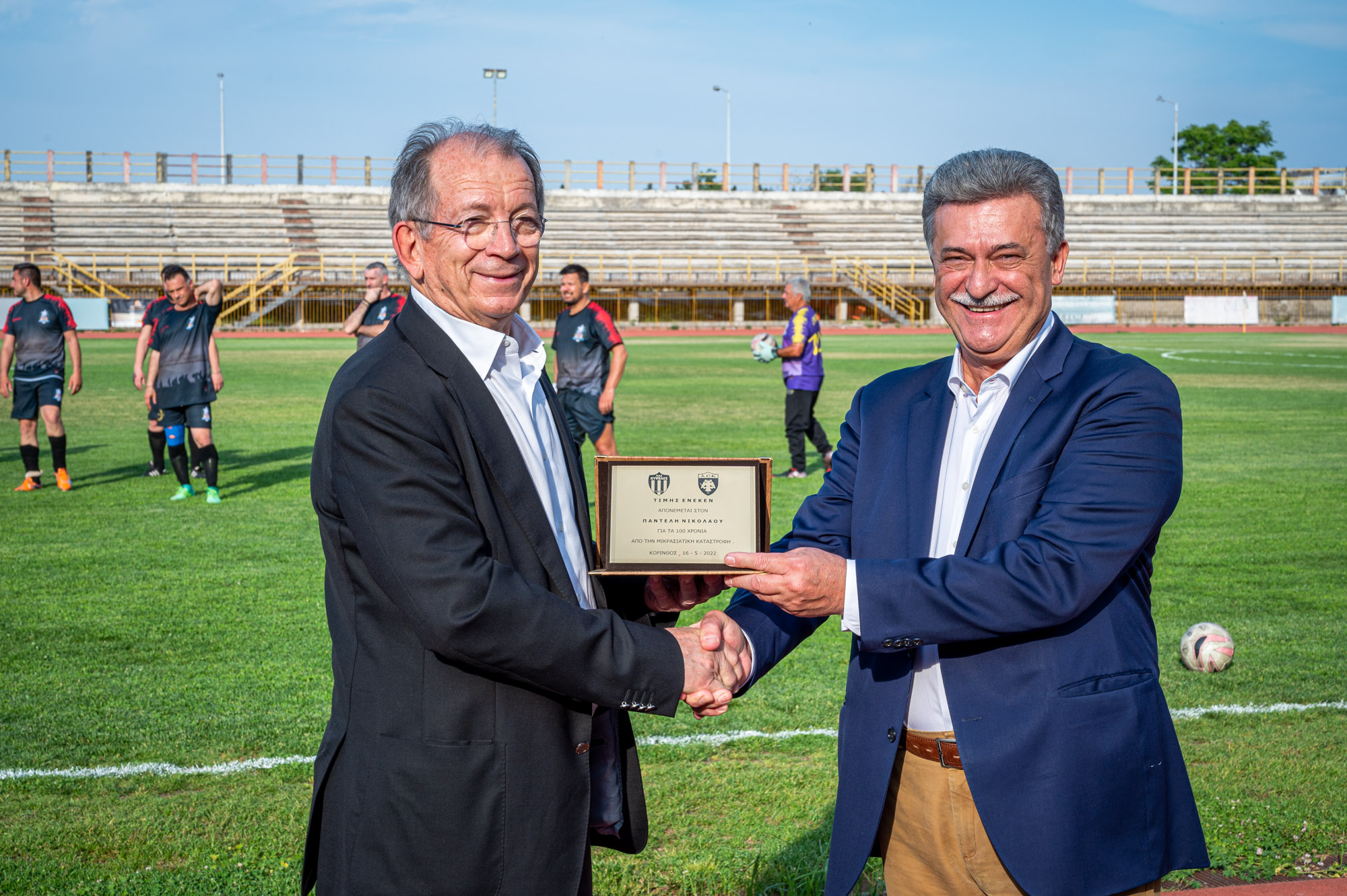 Πριν την έναρξη του αγώνα στη μνήμη των θυμάτων της Μικράς Ασίας τηρήθηκε ενός λεπτού σιγή και τιμήθηκαν άνθρωποι που έχουν γράψει την δική τους ιστορία και στα δύο σωματεία. Ο Δήμαρχος Κορινθίων απένειμε τιμητική πλακέτα στον κ.Λάκη Νικολάου ενθυμούμενος μάλιστα και ποδοσφαιρικές στιγμές του, εξάροντας την ικανότητα του να συνδυάσει με επιτυχία δυο ταλέντα, δυο σταδιοδρομίες, αυτή του γιατρού και αυτή του ποδοσφαιριστή.