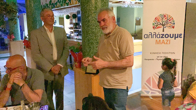 Η Δημοτική Παράταξη “αλλάzουμε ΜΑΖΙ” οργάνωσε, πρόσφατα, εκδήλωση προς τιμήν του Σταύρου Θυμή, στον “φυσικό” του χώρο, στο Cafe-Bar-Eστιατόριο “Πηγή”, στο Λουτράκι.