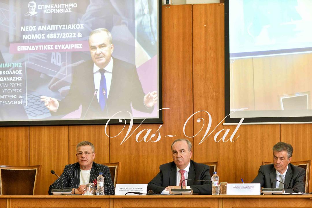 Mε επιτυχία πραγματοποιήθηκε η ενημερωτική εκφήλωση στο Επιμελητήριο Κορινθίας, με αφορμή το Νέο Αναπτυξιακό νόμο με θέμα «Νέος Αναπτυξιακός Νόμος 48877/2022 & Επενδυτικές Ευκαιρίες».