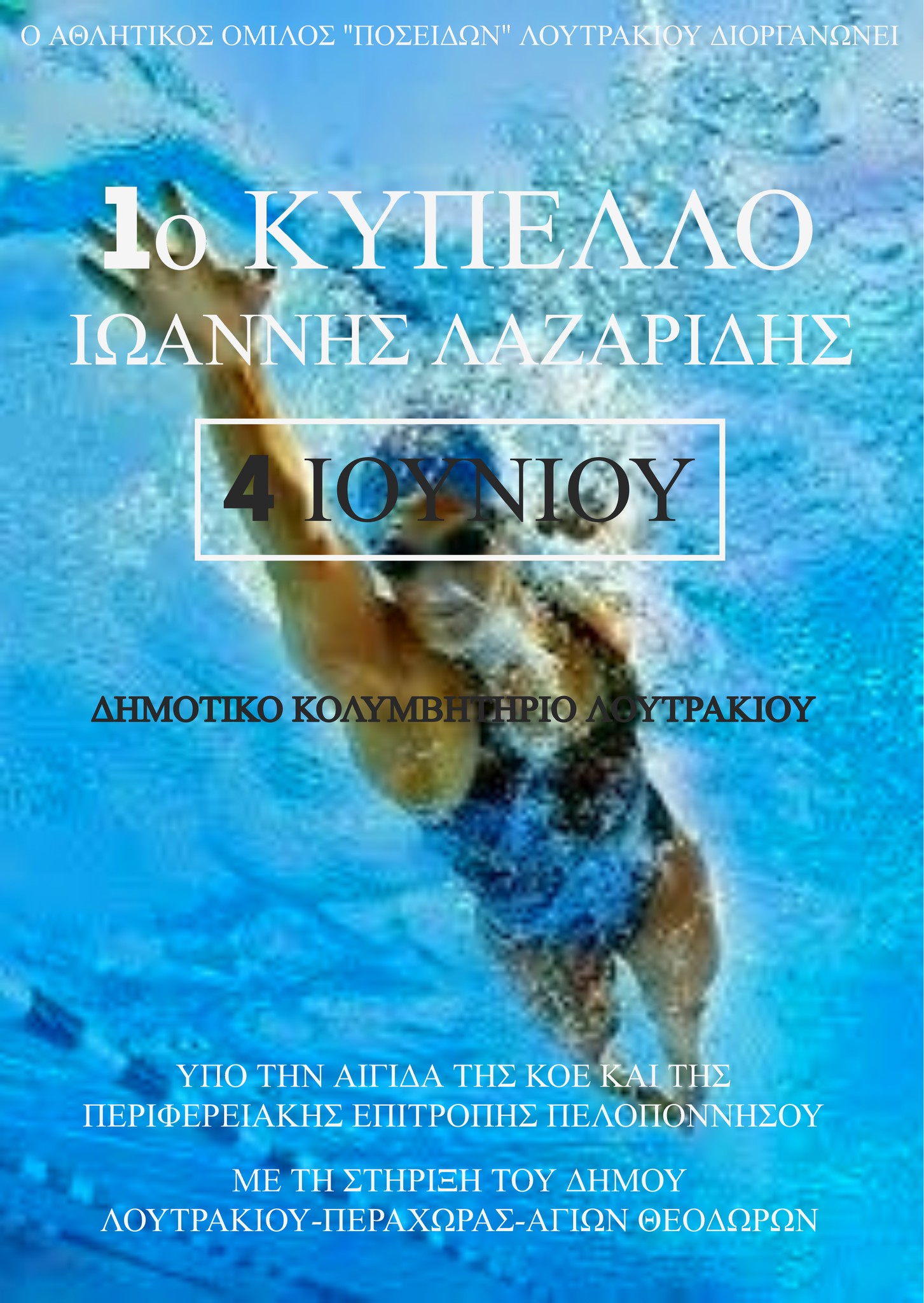 Ο Αθλητικός Όμιλος «ΠΟΣΕΙΔΩΝ» Λουτρακίου, με αφορμή και την επέτειο συμπλήρωσης 60 ετών από την ίδρυση του, διοργανώνει για πρώτη χρονιά τους αγώνες Προαγωνιστικών Κατηγοριών με την επωνυμία 1ο ΚΥΠΕΛΛΟ