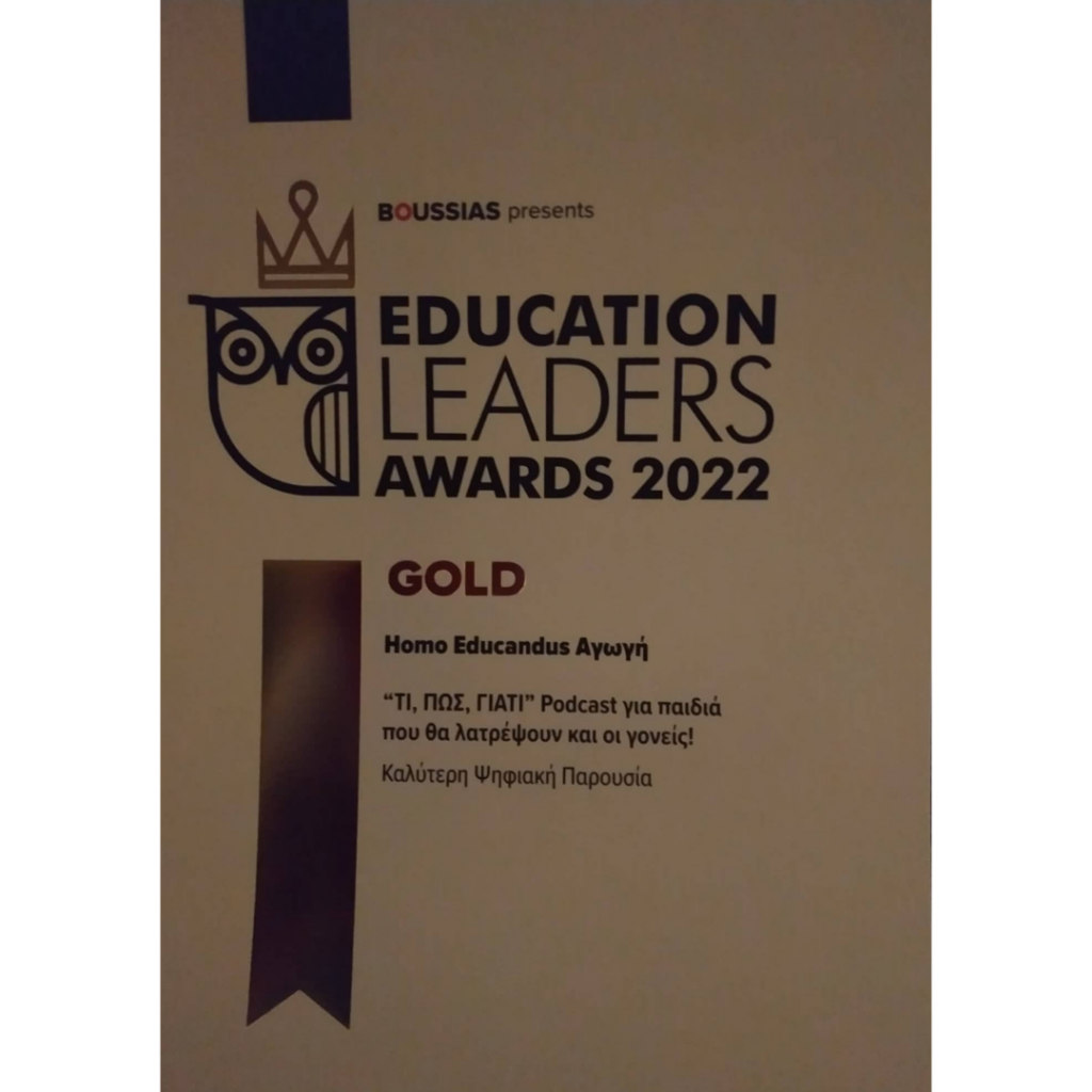 Χρυσό βραβείο για το Homo Educandus Αγωγή στα Education Leaders Awards