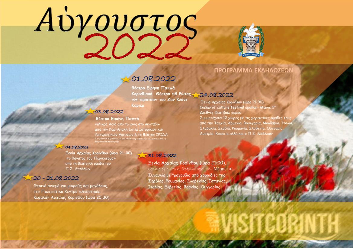 Δείτε αναλυτικά το ΠΡΟΓΡΑΜΜΑ ΠΟΛΙΤΙΣΤΙΚΩΝ ΕΚΔΗΛΩΣΕΩΝ για το μήνα 𝜜𝜰𝜞𝜪𝜰𝜮𝜯𝜪 2022