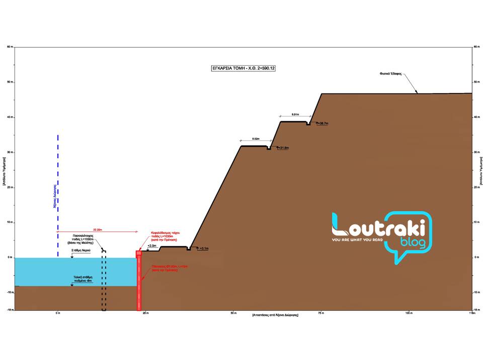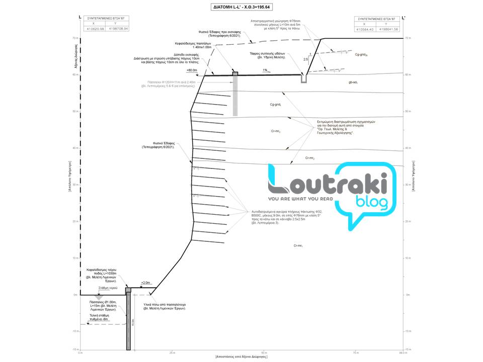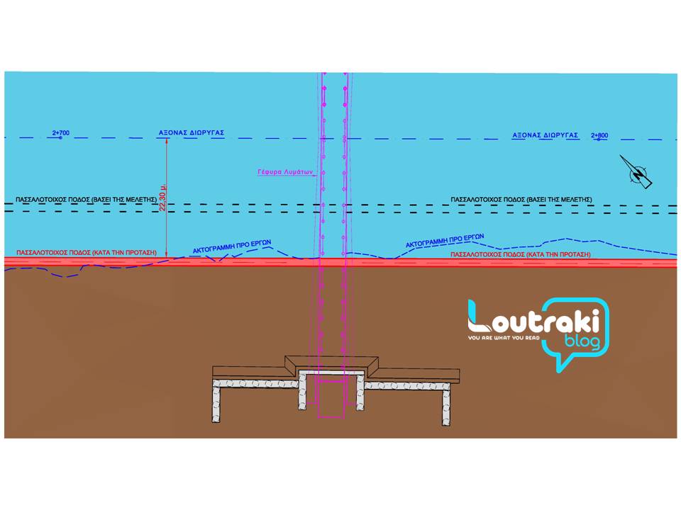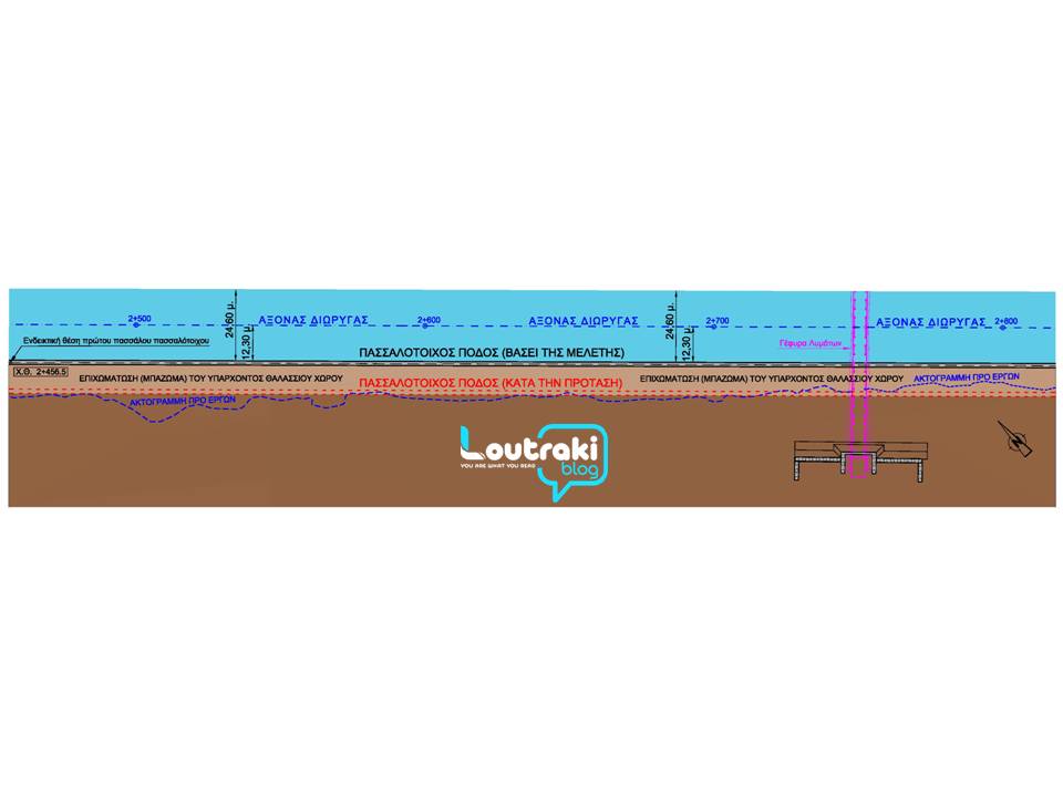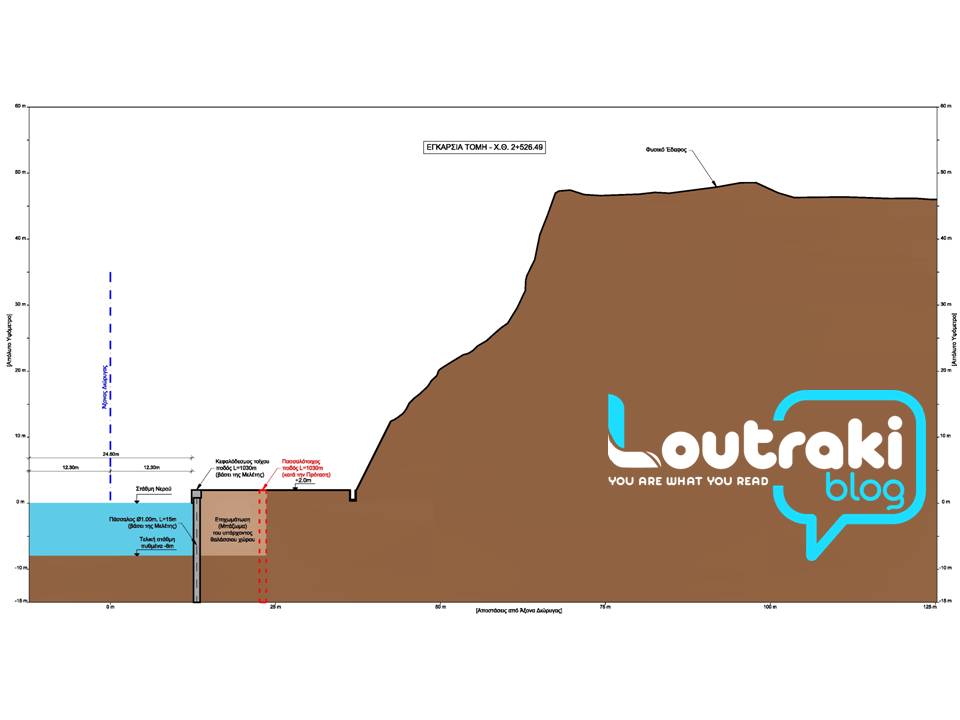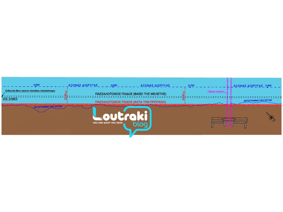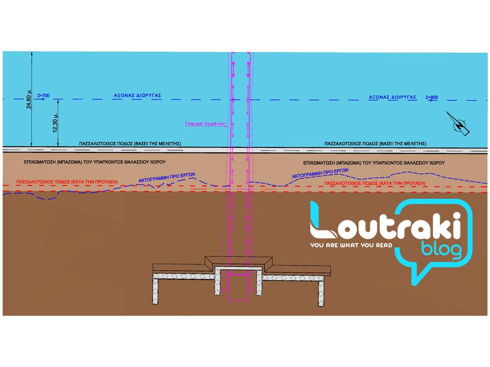 Δηλαδή η ίδια η φύση έχει ορίσει το πλάτος της Διώρυγας, όχι στο 24,60 που είναι σήμερα αλλά στα 48,0μ. (τουλάχιστον). Να σημειωθεί ότι εάν το τοιχίο κατασκευαστεί βάσει του σχεδίου της μελέτης το τμήμα του πλάτους της διώρυγας το πέραν του 24,60μ. που είναι νερό-θάλασσα μπαζώνεται (!!!).