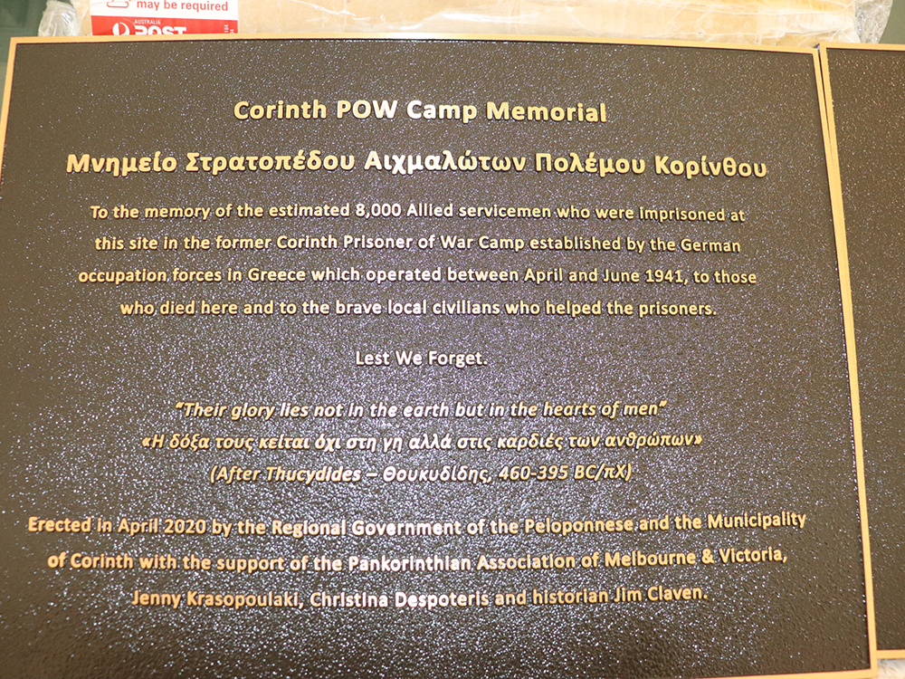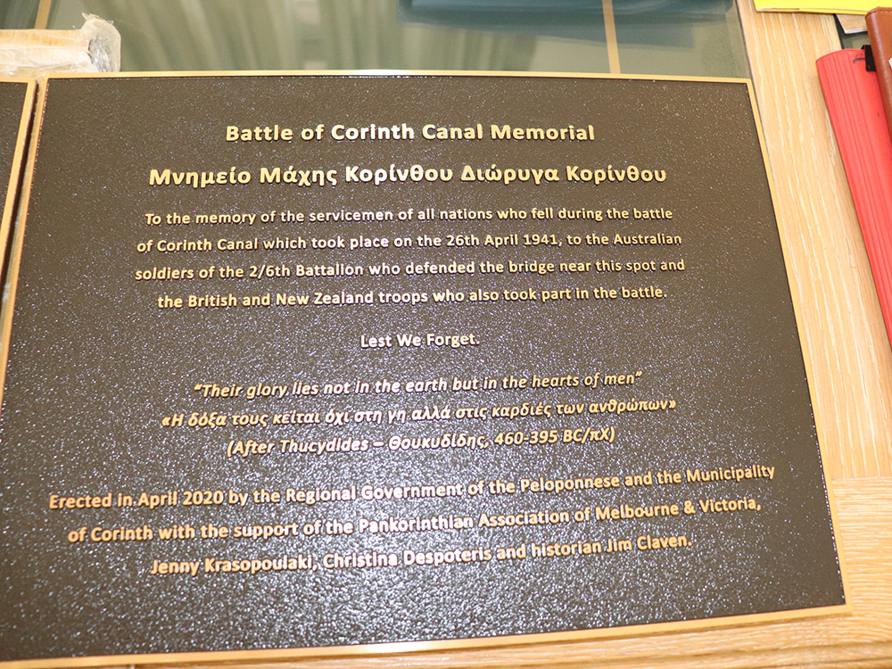 Από τις εν λόγω πλάκες, που θα τοποθετηθούν στον Ισθμό της Κορίνθου, η μία αφορά στους πεσόντες στην μάχη μεταξύ των συμμάχων και των γερμανικών στρατευμάτων εισβολής που διεξήχθη πέριξ της διώρυγας του Ισθμού στις 26 Απριλίου 1941 και η δεύτερη στην λειτουργία στην ίδια περιοχή -από τον γερμανικό στρατό κατοχής- στρατοπέδου αιχμαλώτων πολέμου στο οποίο το τρίμηνο μεταξύ Απριλίου και Ιουνίου 1941 φυλακίστηκαν περί τους 8.000 στρατιώτες των συμμάχων, μέχρι όσοι από αυτούς επέζησαν να προωθηθούν σε ανάλογου τύπου στρατόπεδα στην Γερμανία ή σε επίσης κατεχόμενες χώρες της Κεντρικής Ευρώπης.