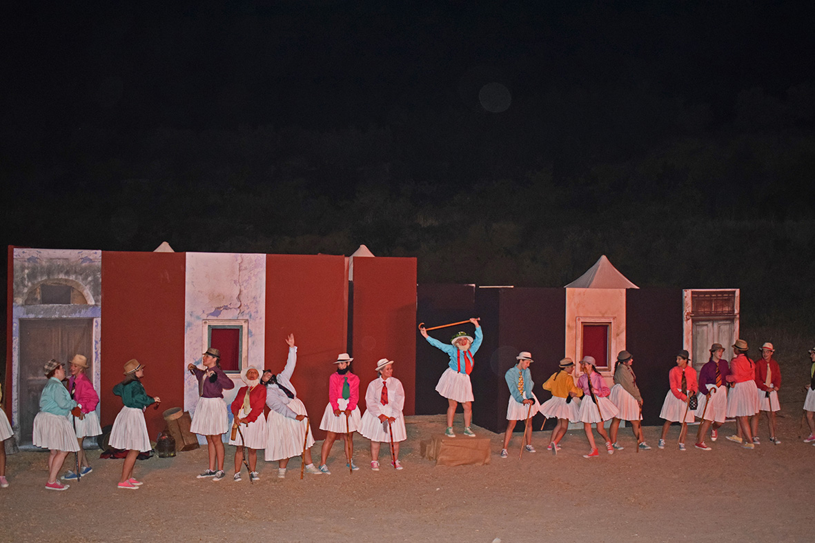 Η παράσταση, υπό την καθοδήγηση του, κινήθηκε σε αυτήν την τροχιά, με γρήγορους ρυθμούς, μεταξύ ουτοπίας και νοσταλγίας, χωρίς υπερβολές, χωρίς επιθεωρησιακή αντίληψη. Σε αυτό βοήθησε ο γυναικείος χορός, που παρά το μεγάλο αριθμό των μελών, υπήρξε πειθαρχημένος και με σχετική ελαφράδα, μετατρέποντας το θεατρικό χώρο σε χώρο ονείρου, βοηθούμενος από τα ωραία και ευρηματικά κουστούμια και τη ζωηρή κίνηση, σε διδασκαλία και κουστούμια της Γωγώς Καρακούση.