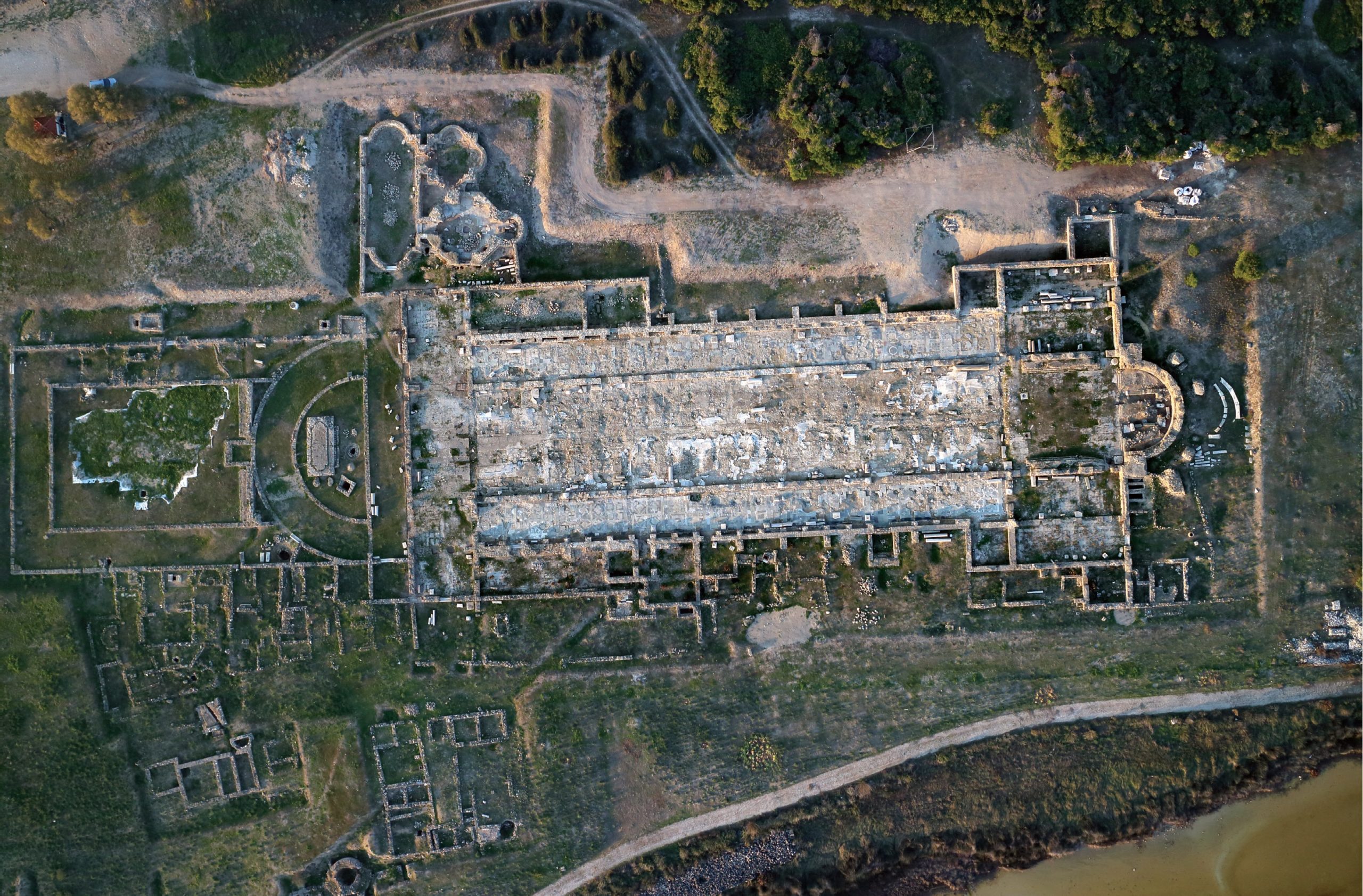 Η βασιλική είχε χτισθεί εκτός των κυρίων εγκαταστάσεων του λιμένα. Το θαλάσσιο μέτωπο του εξωτερικού λιμένα, με τις σημερινές γνώσεις που διαθέτουμε, εκτείνονταν σε μήκος περίπου 1000,0 μ..