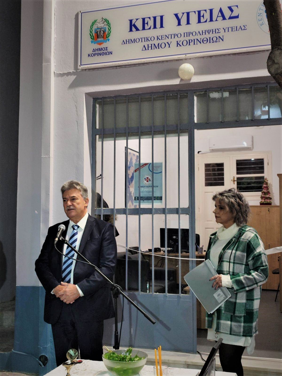 Ο Πρόεδρος του Δικτύου Υγιών Πόλεων κ.Γιώργος Πατούλης, χαιρέτισε την νέα δομή της Κορίνθου σημειώνοντας τον ρόλο των ΚΕΠ στην πρόληψη και την προαγωγή υγείας. «Σήμερα το δίκτυο των ΚΕΠ Υγείας, αποτελείται από 150 δήμους μέλη του Ελληνικού Διαδημοτικού Δικτύου Υγιών Πόλεων, ενώ βούλησή μας είναι όχι μόνο οι Δήμοι του ΕΔΔΥΠΠΥ αλλά όλοι οι Δήμοι της χώρας να αποκτήσουν το δικό τους ΚΕΠ Υγείας. Ο θεσμός των ΚΕΠ Υγείας αποτελεί σημαντικό εργαλείο βοήθειας για όσους συνανθρώπους μας έχουν ανάγκη, δίνοντας τους τη δυνατότητα να υποβάλλονται σε εξετάσεις πρόληψης από ασθένειες πριν εκδηλώσουν την νόσο. Με αυτό τον τρόπο προλαμβάνονται νοσήματα για τα οποία έχει αποδειχθεί με μελέτες πως η έγκαιρη προληπτική παρέμβαση και ανίχνευση κρίνεται αποτελεσματική και μπορεί να σώσει ζωές» ανέφερε στον χαιρετισμό που αναγνώσθηκε στην διάρκεια της εκδήλωσης αφού δεν κατέστη δυνατό να παραστεί όπως αρχικά είχε προγραμματιστεί, εκπροσωπήθηκε ωστόσο από στελέχη της κεντρικής δομής , τις κυρίες Αραμπατζή Μαρία, ,Μαριάνθη Χατζηκωνσταντίνου, Φωτεινή Χατζηκωνσταντίνου και Γιώτη Μαρία.
