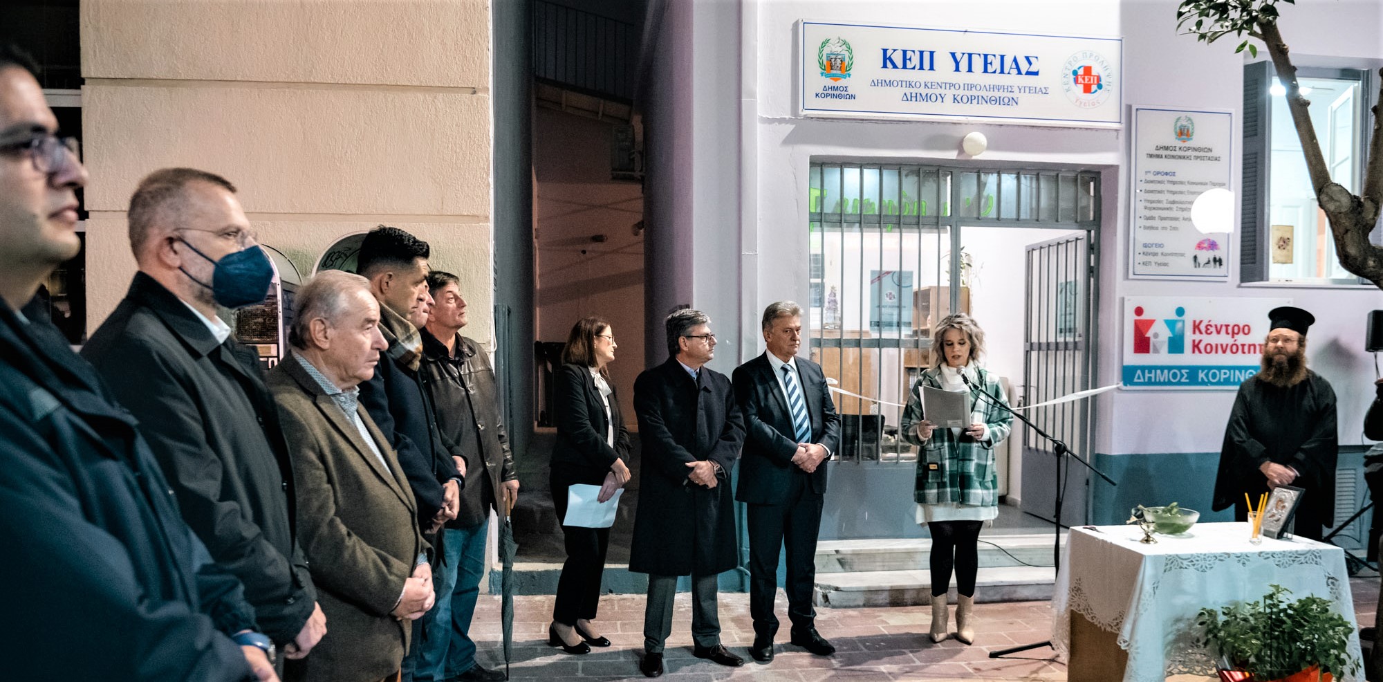 Τις ευχές του Σεβασμιοτάτου Μητροπολίτου Κορίνθου μετέφερε ο πατήρ Παναγιώτης Μαυραγάνης πραγματοποιώντας και τον αγιασμό της νέας δομής. Στην τελετή εγκαινίων παρέστησαν, μεταξύ άλλων, και τους ευχαριστούμε θερμά, η ειδική σύμβουλος του Πρωθυπουργού Μαριλένα Σούκουλη, ο εκπρόσωπος του Αστυνομικού διευθυντή Κορινθίας, διοικητής ΑΤ Κορίνθου Γιώργος Λιμνιάτης, οι Πρόεδροι του ΚΕΠΑΠ και του Κέντρου Κοινωνικής Πολιτικής κ.κ Κουτσογκίλας και Ταγαράς, οι Αντιδήμαρχοι κ.κ Ραντίτσα, Πούρος, Παπαιωάννου, ο Πρόεδρος του Επιμελητηρίου Παναγιώτης Λουζιώτης, ο γιατρός κ.Χρήστος Σεργεντάνης , οι σύμβουλοι του Δημάρχου κ.κ Σακελλαράκης και Καραμαλίκη, ο Γενικός Γραμματέας του δήμου Κορινθίων Νεκτάριος Σπηλιόπουλος, η προϊσταμένη Κοινωνικών Υπηρεσιών του δήμου Κορινθίων Αναστασία Σπυροπούλου, η γενική διευθύντρια του δήμου Χρυσούλα Ξύδη, στελέχη της κοινωνικής υπηρεσίας του δήμου Κορινθίων και δομών υγείας της Κορινθίας.