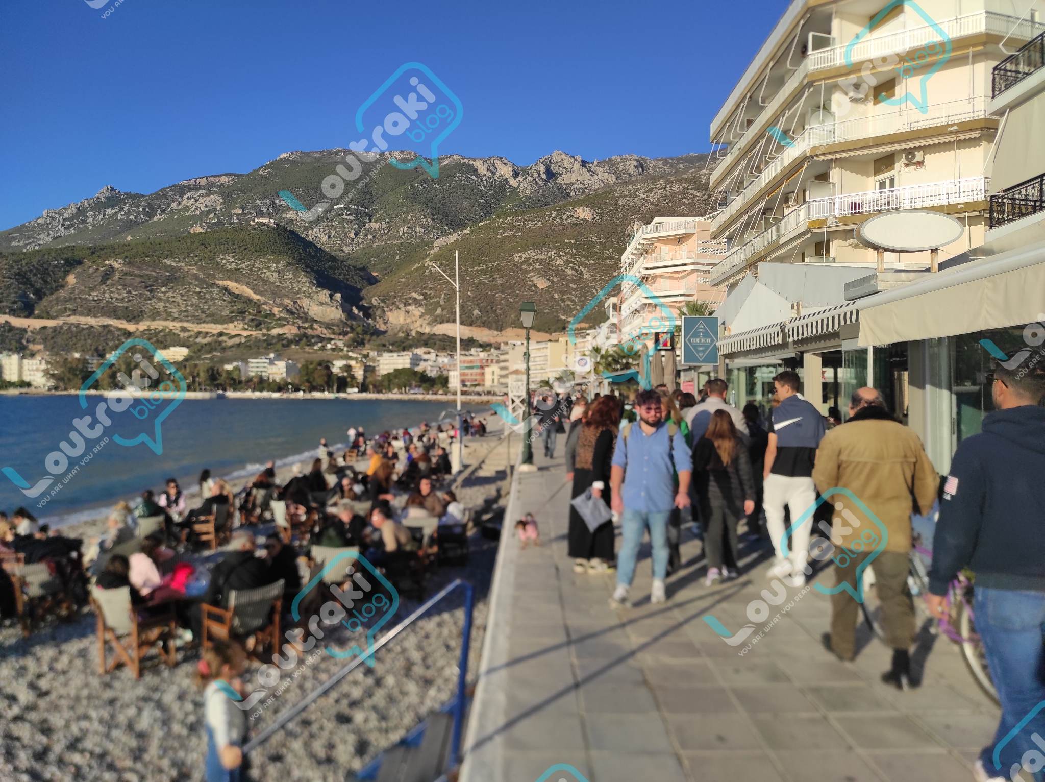 Κατόπιν ντόπιοι και επισκέπτεςς απόλαυσσαν τη βόλτα τους στην παραλία. Καφετέρειες και ταβέρνες σήμερα ήταν ασφυκτικά γεμάτες, γεγονός που αποτέλεσε ανάσα για τους καταστηματάρχες!