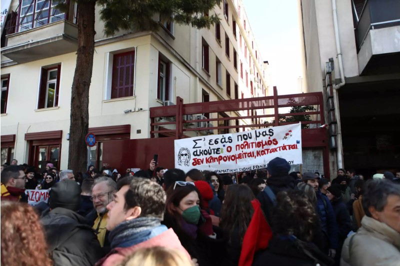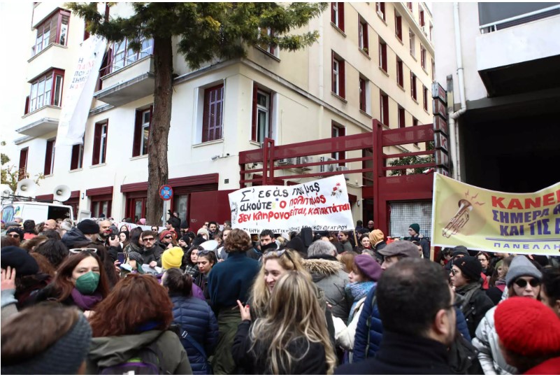 Το πρωί είχαν προχωρήσει σε συμβολική κατάληψη του υπουργείου, αναρτώντας και ένα μεγάλο πανό στην πρόσοψή του.