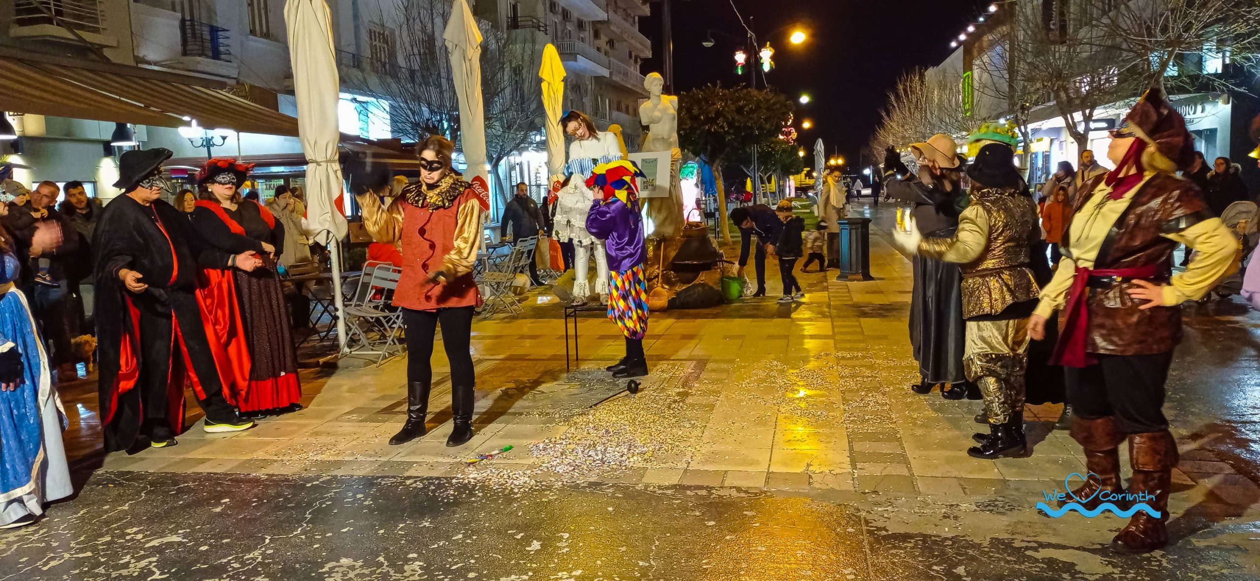 Το Κορινθιακό θέατρο Βασίλη Ρώτα ,με 30 και πλέον μέλη του, ερασιτέχνες ηθοποιούς, παρουσίασε με μοναδικό τρόπο, για ακόμα μια φορά, το δρώμενο “Commedia dell arte”, την ιστορία του Ρωμαίου και της Ιουλιέτας… αλλιώς!