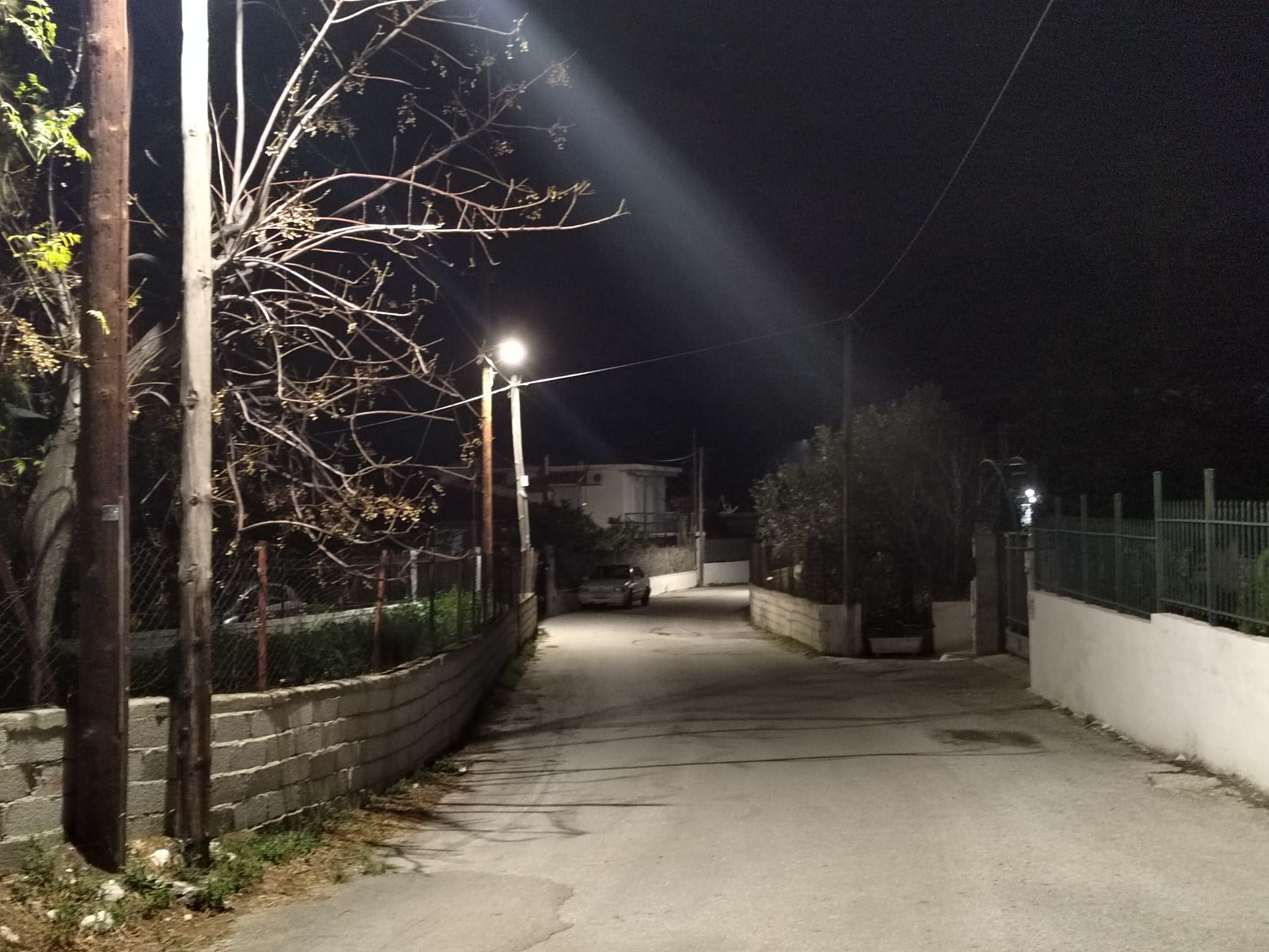 Τοποθέτηση και εγκατάσταση νέων φωτιστικών σωμάτων και αντικατάσταση παλαιών λαμπτήρων με λαμπτήρες LED στην οδό Πραθίου, στους Αγίους Θεοδώρους.