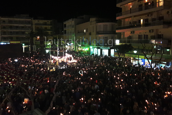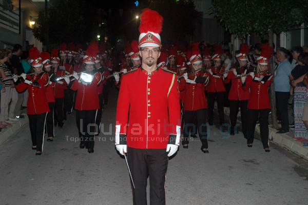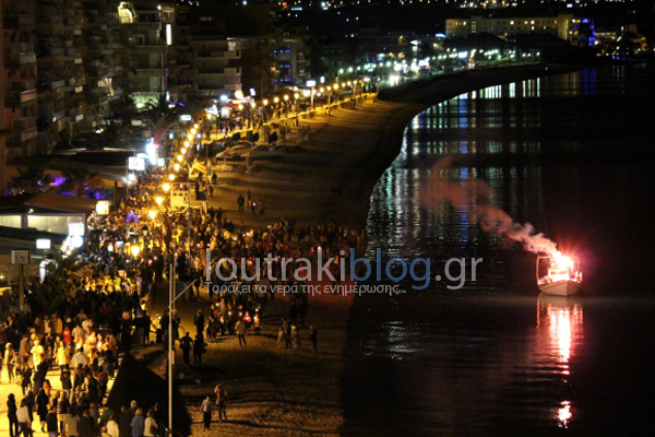 γειτονιές του Λουτρακίου με τον κόσμο να κρατά αναμμένα κεριά,ακολουθώντας την πομπή και συνοδεία χορωδιών που ψάλλουν. Κορυφαία στιγμή είναι η περιφορά κατά μηκος της Παραλιακής