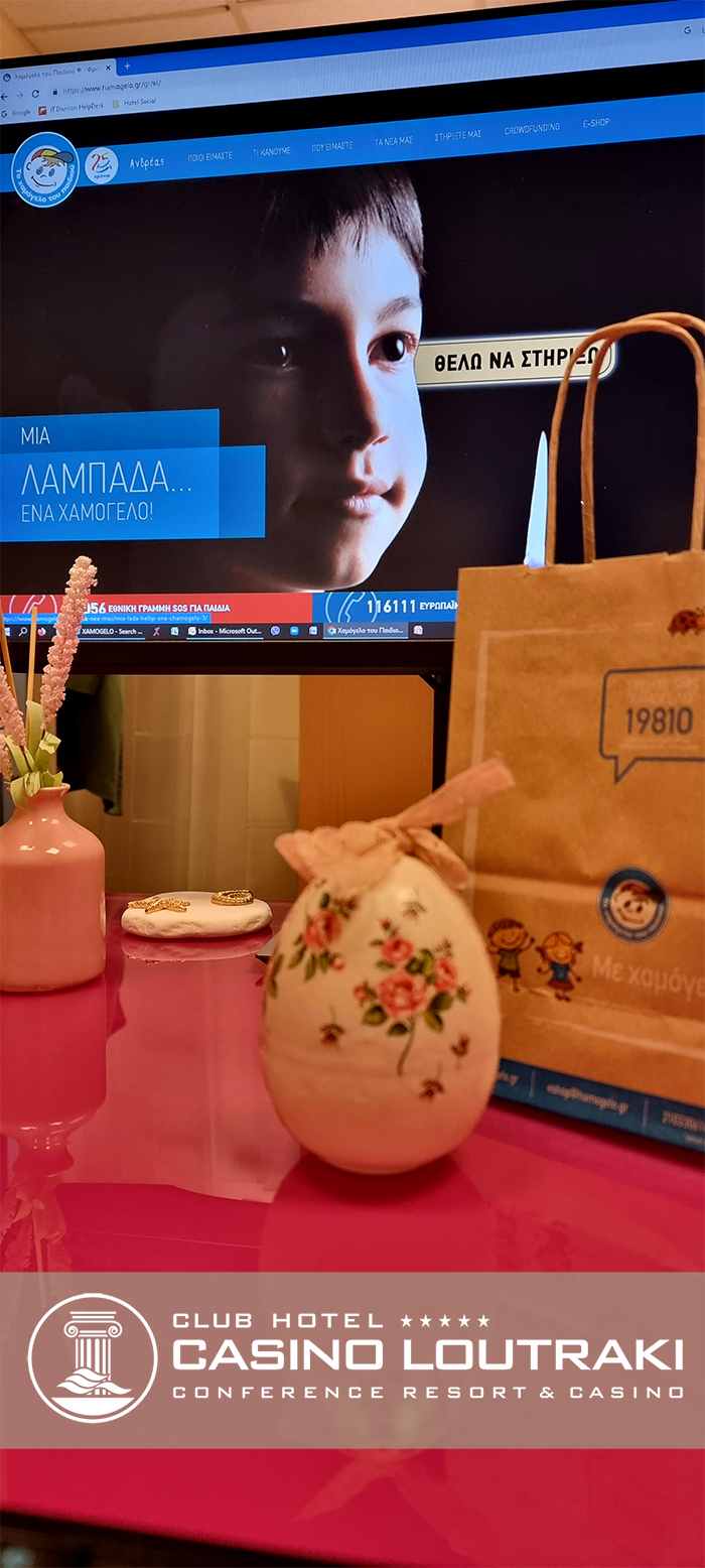 Η Club Hotel Casino Loutraki , σταθερά κοντά στο «Χαμόγελο Του Παιδιού» και με αυξημένο το αίσθημα της αλληλεγγύης, στηρίζει και φέτος το έργο του οργανισμού. Με την εξασφάλιση του εορταστικού τραπεζιού δικαιούχων των Κέντρων Στήριξης Παιδιού & Οικογένειας, 10 ευπαθείς οικογένειες θα έχουν τη δυνατότητα να γιορτάσουν το Πάσχα του 2023 με αξιοπρέπεια όπως αρμόζει σε κάθε ελληνική οικογένεια. Η δωρεά της Club Hotel Casino Loutraki περιλαμβάνει αγορά ηλεκτρονικών ευχετήριων καρτών για τους πελάτες και τους συνεργάτες της καθώς και τη φιλοξενία στις εγκαταστάσεις της έκθεσης πώλησης αντικειμένων για το προσωπικό της, το οποίο είναι πάντοτε πρόθυμο να ενισχύσει συλλογικά το έργο του οργανισμού.