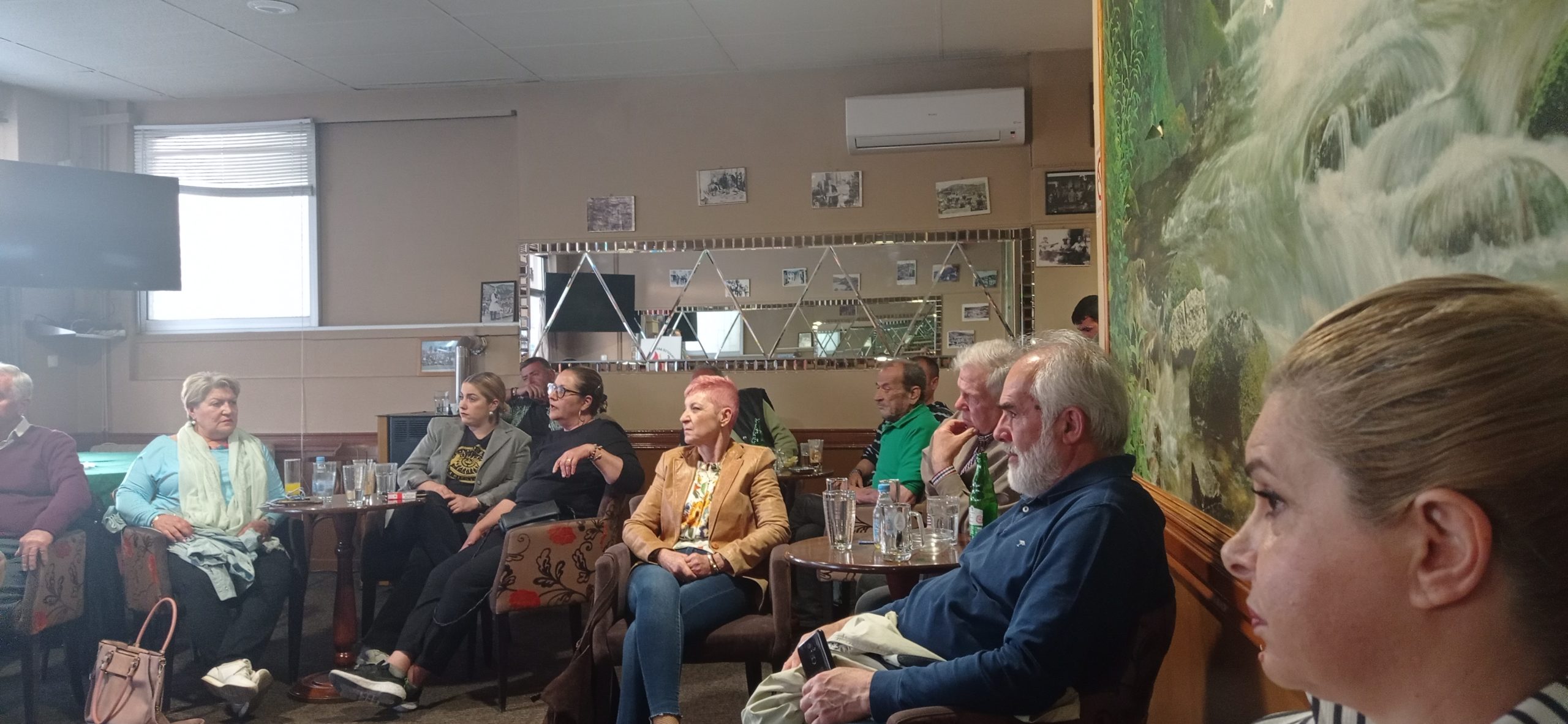 Ένας ακόμη κρίκος προστέθηκε στην αλυσίδα των συναντήσεων της Δημοτικής Παράταξης “αλλάzουμε ΜΑΖΙ” με Συλλόγους, Φορείς και Δημότες, για διαβούλευση και εμπλουτισμό του νέου προγράμματός της.Αντιπροσωπεία της παράταξης, αποτελούμενη από τον Επικεφαλής Ιωάννη Καραπανάγο, τον Δημοτικό Σύμβουλο Γιάννη Γλυκοφρύδη, τον Δημήτρη Αικατερίνη, την Μάχη Ανδριανού και την Ευαγγελία Παπακωνσταντίνου συναντήθηκε, πρόσφατα, με την Πρόεδρο και τον Αντιπρόεδρο του Πολιτιστικού Συλλόγου Περαχώρας, κα Αθανασία Κολλιάκου και κ. Γιάννη Λογοθέτη, αντίστοιχα, τον Πρόεδρο της Ένωσης Φίλων Αρχαιολογικού Μουσείου Περαχώρας κ. Σωτήρη Πρωτοπαππά, τον Πρόεδρο του Συλλόγου Γονέων και Κηδεμόνων Σχολείων Περαχώρας κ. Νικόλαο Κοριατόπουλο, τον Αντιπρόεδρο του Αθλητικού Ομίλου Περαχώρας κ. Ανδρέα Μελέτη, τα Μέλη του Experience Perachora Korinthia, κυρίες Ασημίνα Γιαννούλη και Χρυσούλα Παππά, τον Ταμία του Λαογραφικού Μουσείου Περαχώρας κ. Κωνσταντίνο Παπαδημητρίου και Δημότες, στο καφενείο ‘‘Γεράνης’’.