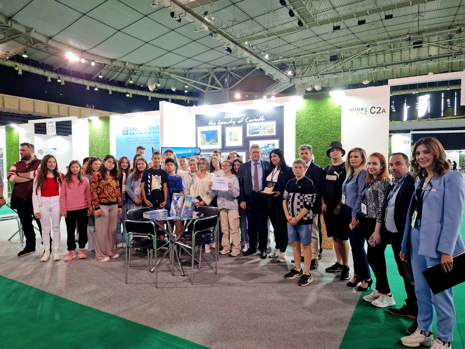 Στα πλαίσια αυτά ο Δήμαρχος Κορινθίων υποδέχτηκε τους μαθητες απο το Χιλιομόδι, τους ξενάγησε στην έκθεση και στο περίπτερο βεβαιως του δήμου, τονίζοντας για ακόμα μια φορά πως τα παιδιά είναι το μέλλον και η ελπίδα του πλανήτη μας.
