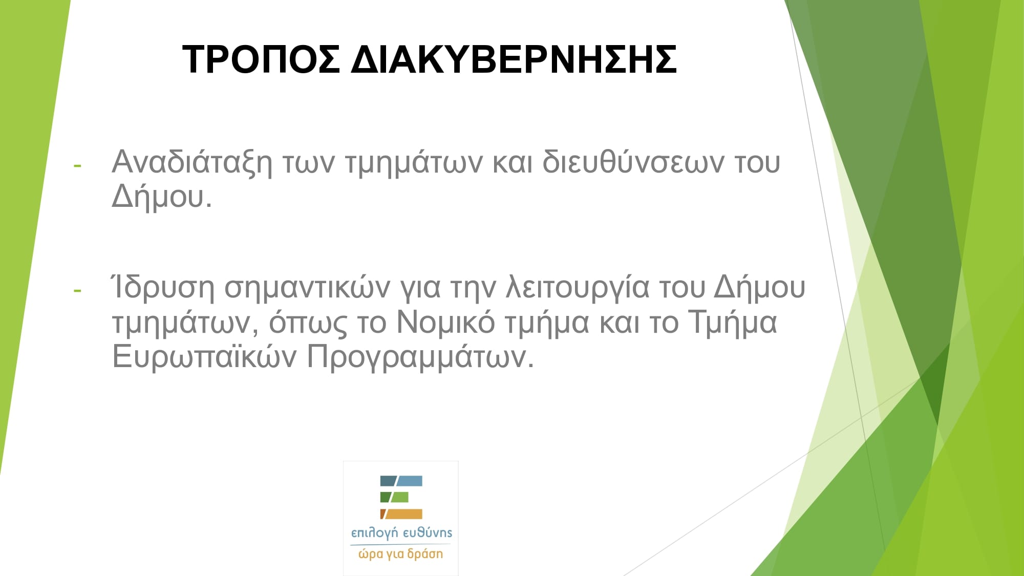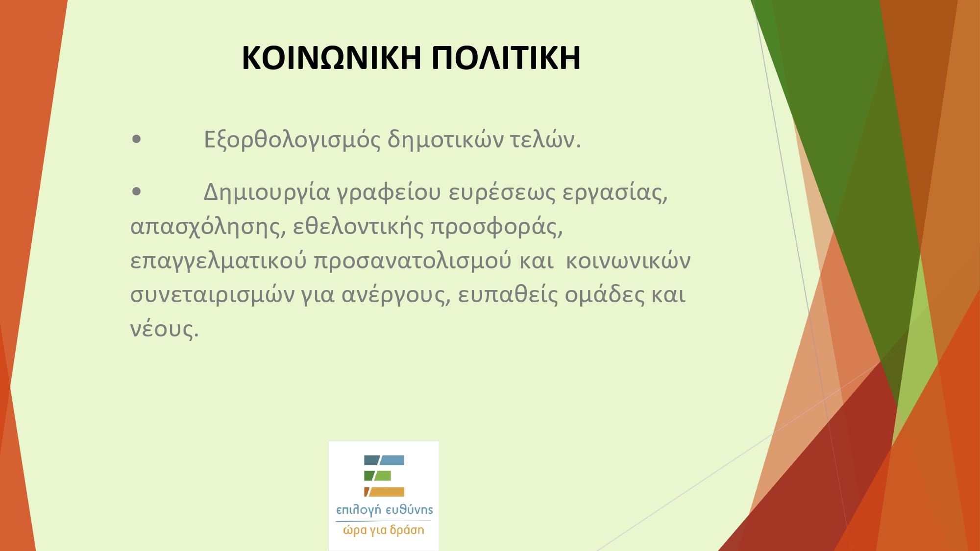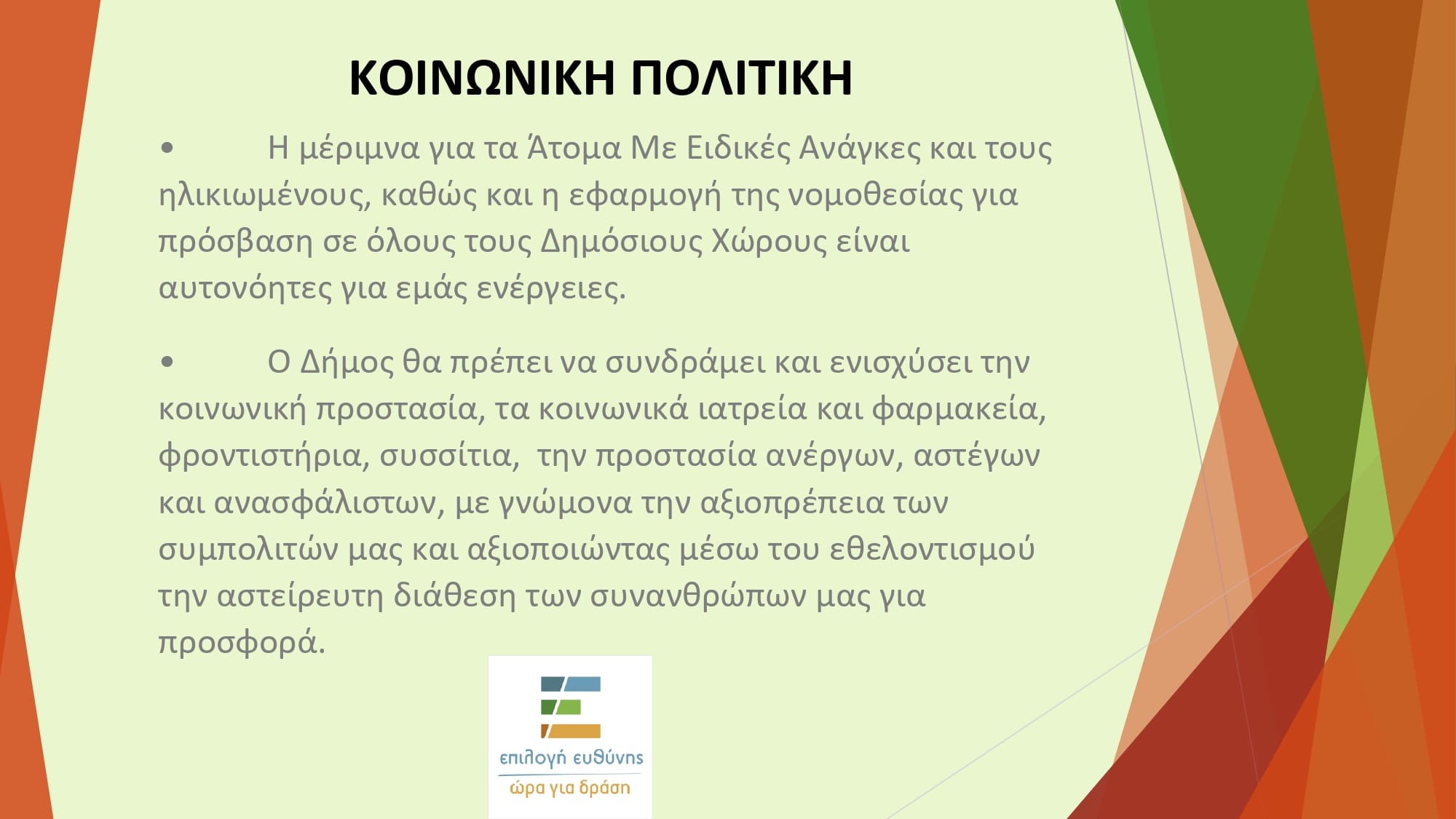 Ο υποψήφιος δήμαρχος Λουτρακίου-Περαχώρας-Αγίων Θεοδώρων, Κωστής Ζερβός, επικεφαλής της παράταξής ΕΠΙΛΟΓΗ ΕΥΘΥΝΗΣ-ΩΡΑ ΓΙΑ ΔΡΑΣΗ, ανακοίνωσε τις προγραμματικές του θέσεις για το μοντέλο διοίκησης του δήμου και την κοινωνική πολιτική.