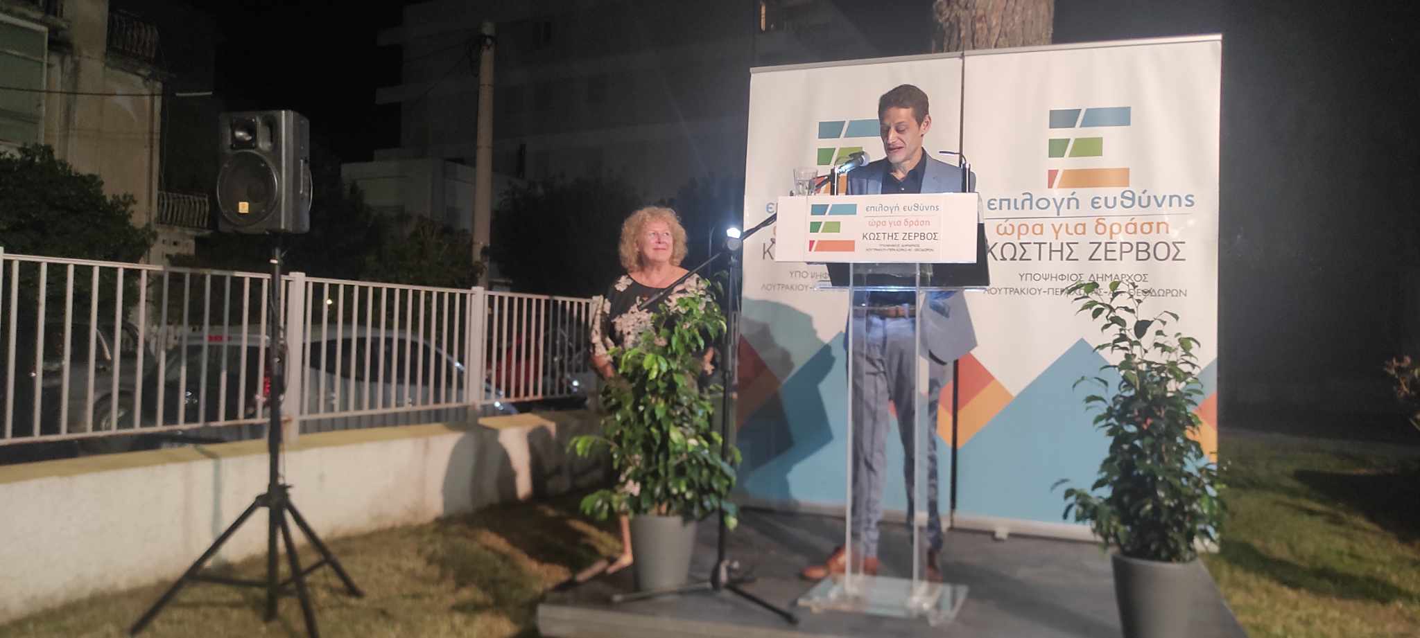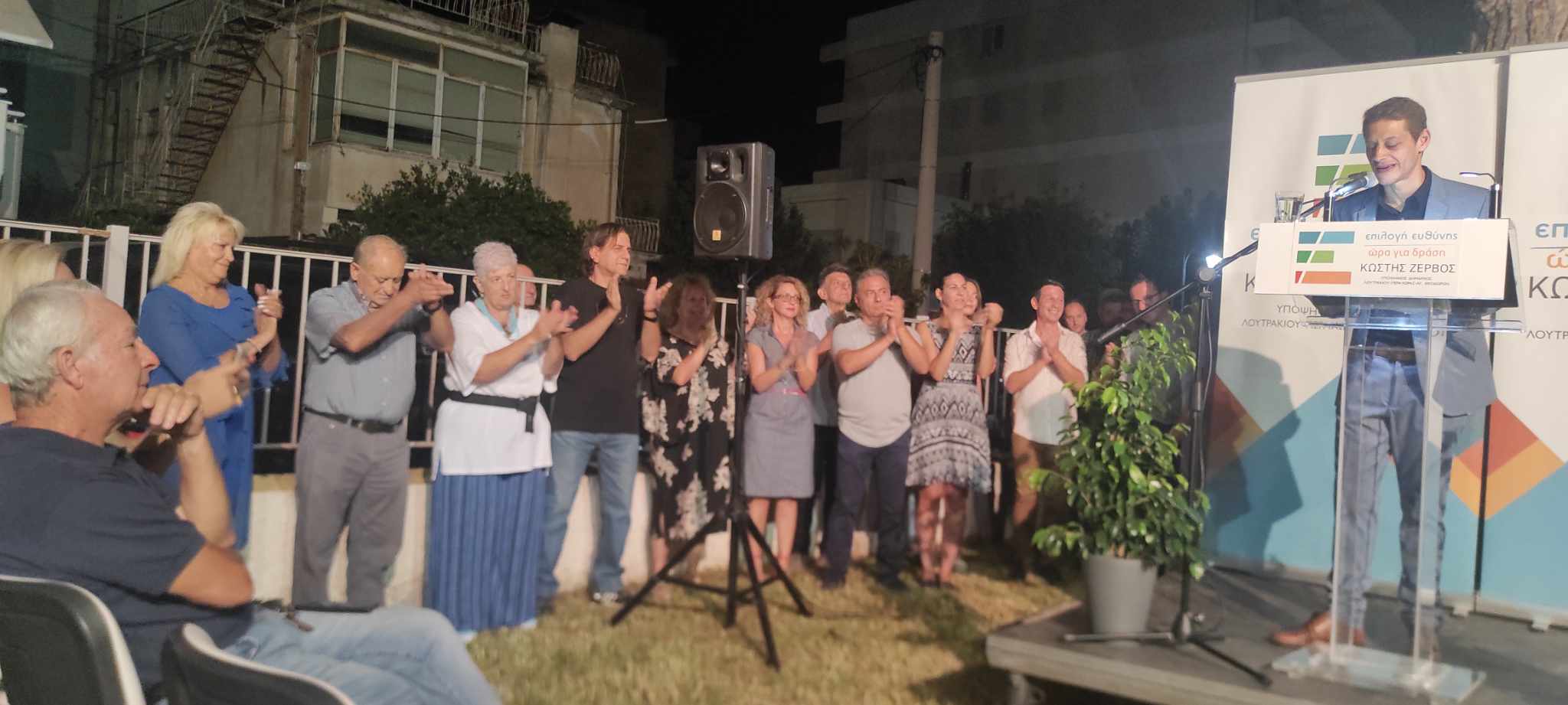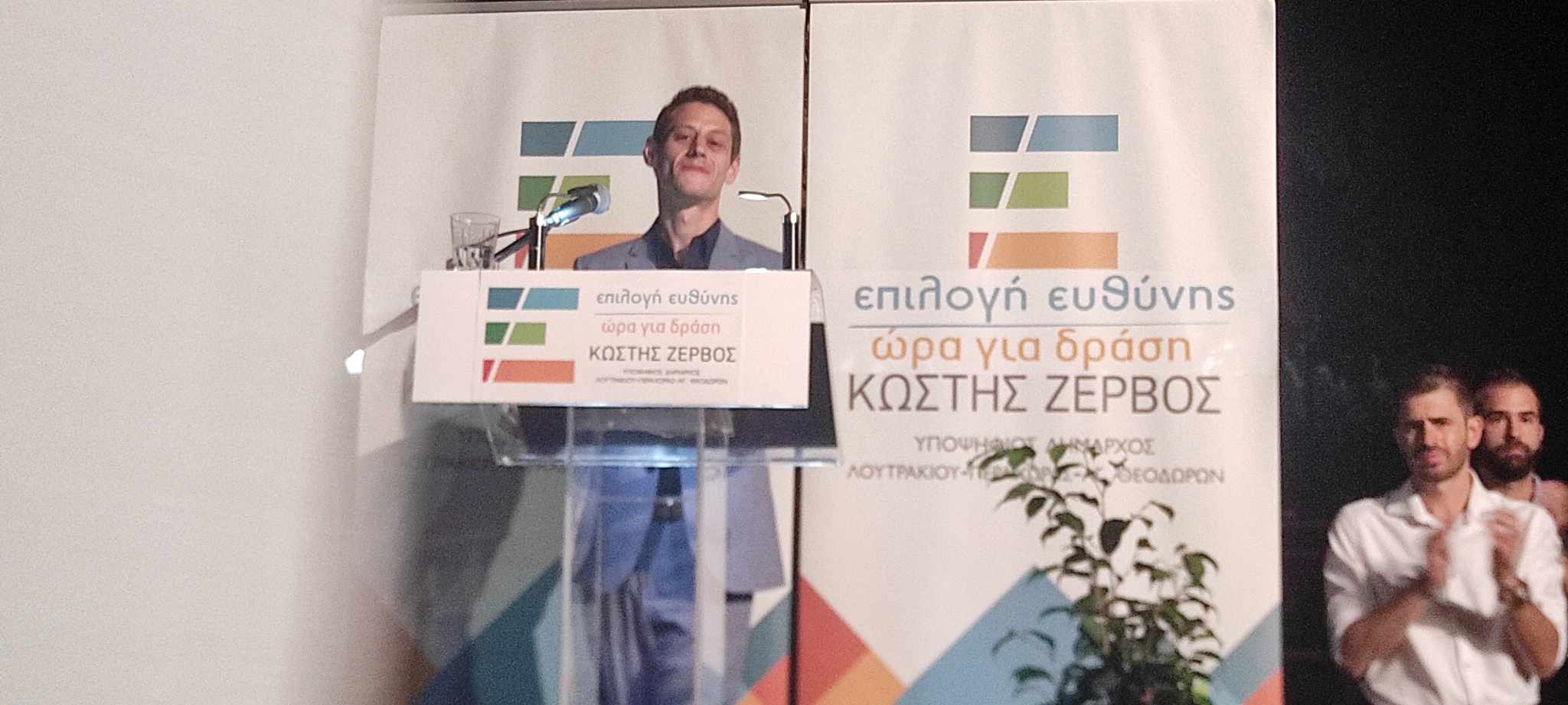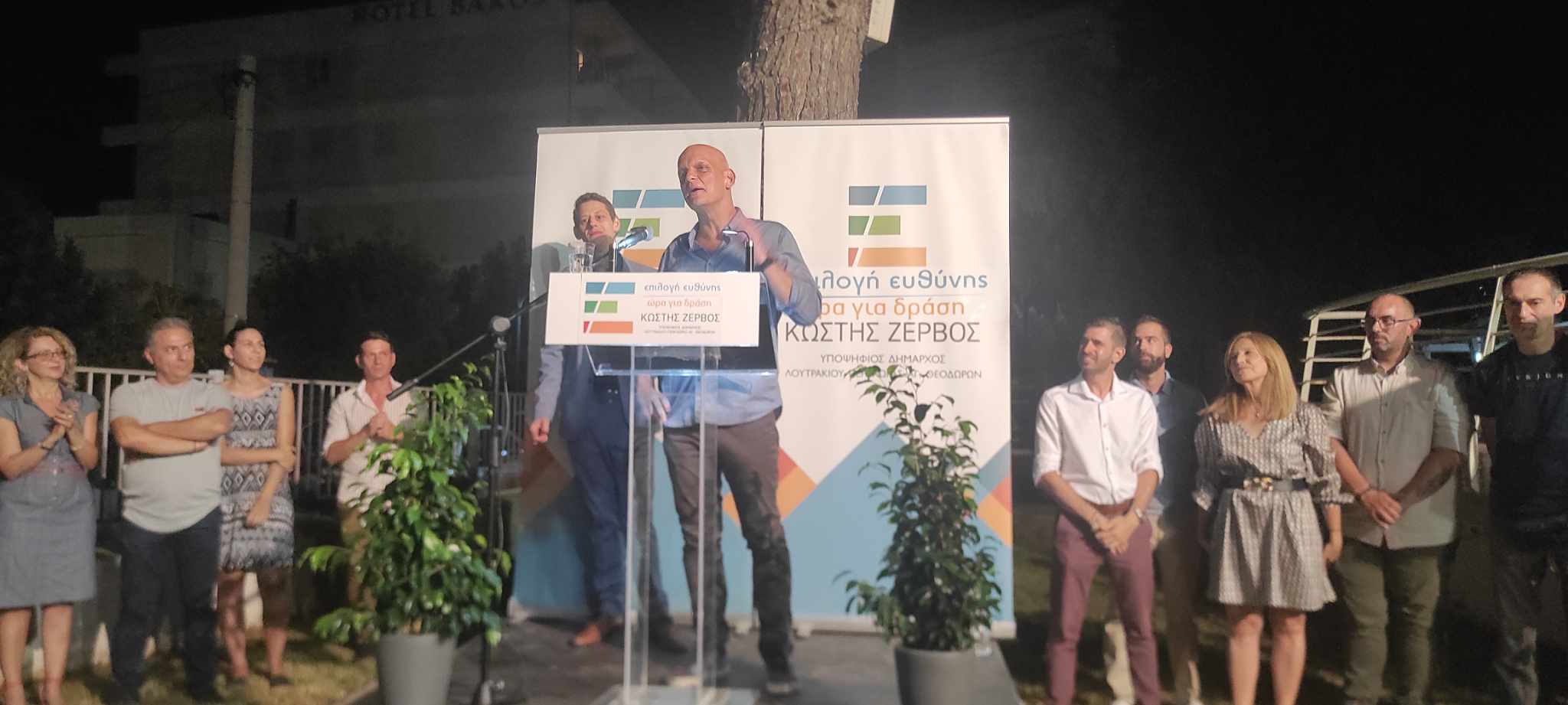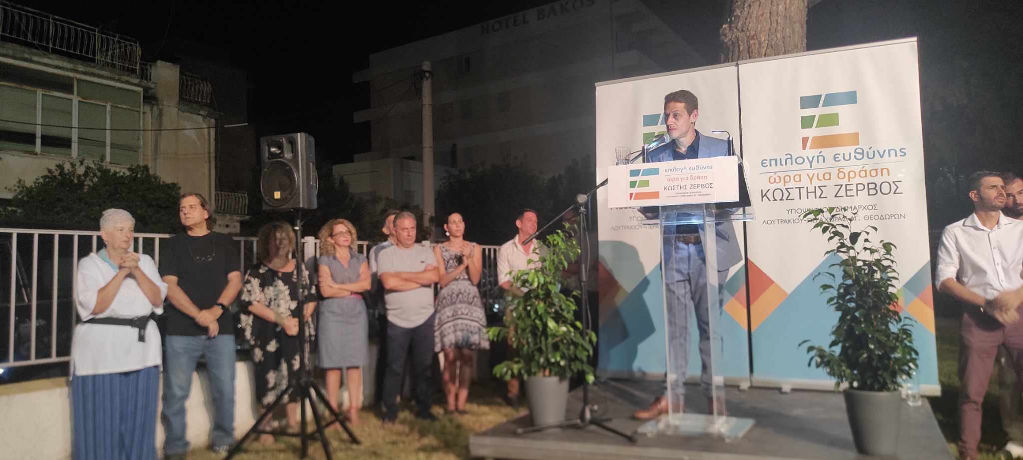 Στον όμορφο προαύλιο χώρο της δημοτικής βιβλιοθήκης στο Λουτράκι, ο επικεφαλής του συνδυασμού ΕΠΙΛΟΓΗ ΕΥΘΥΝΗΣ-ΩΡΑ ΓΙΑ ΔΡΑΣΗ, Κωστής Ζερβός, υποψήφιος δήμαρχος του Δήμου Λουτρακίου-Π-Αγ.Θ., παρουσίασε τους υποψηφίους του συνδυασμού του!