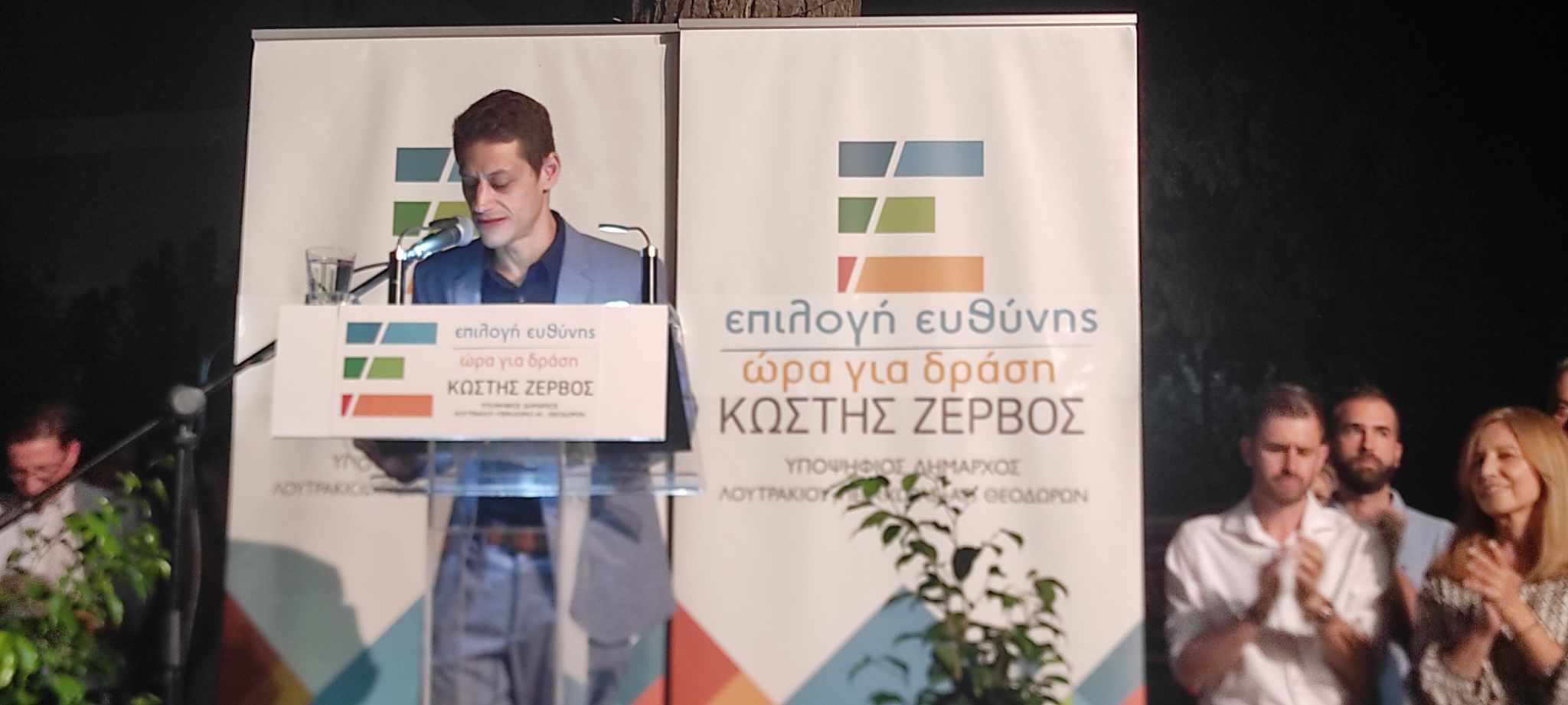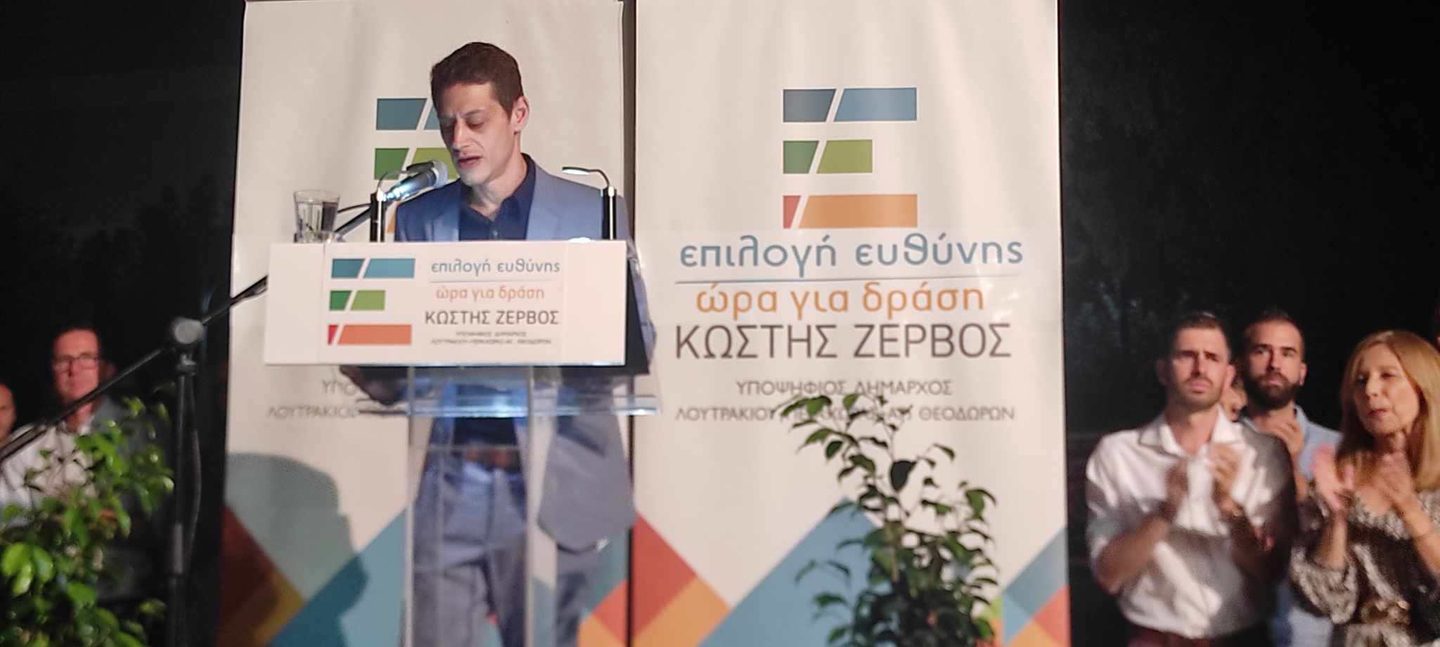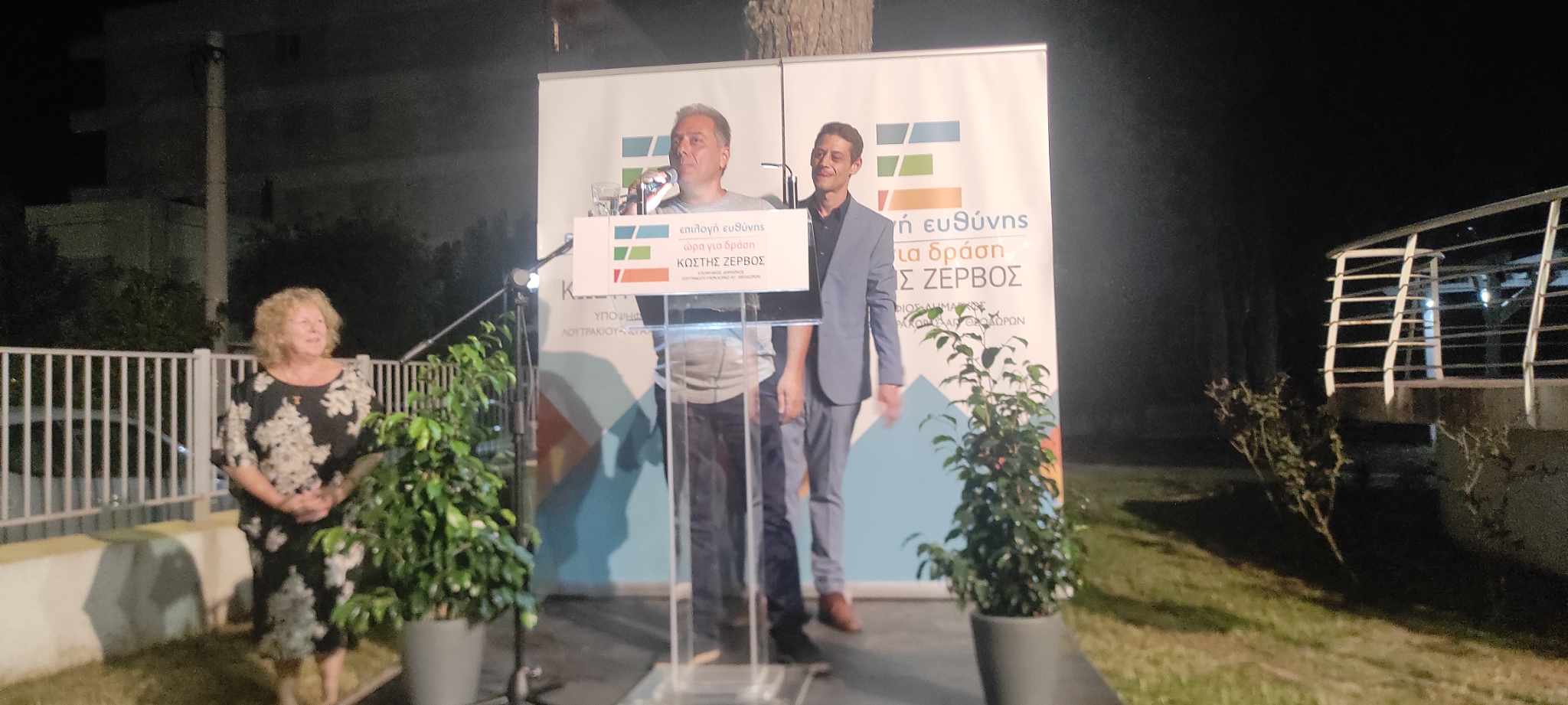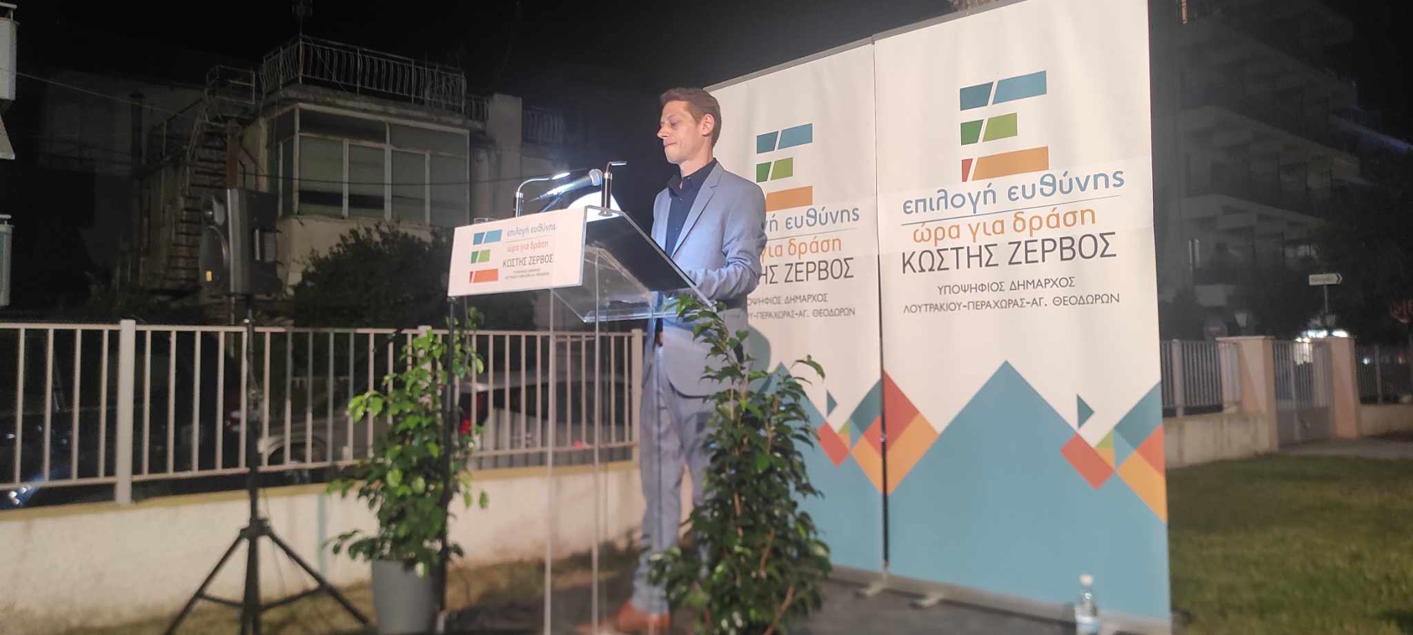 Στον όμορφο προαύλιο χώρο της δημοτικής βιβλιοθήκης στο Λουτράκι, ο επικεφαλής του συνδυασμού ΕΠΙΛΟΓΗ ΕΥΘΥΝΗΣ-ΩΡΑ ΓΙΑ ΔΡΑΣΗ, Κωστής Ζερβός, υποψήφιος δήμαρχος του Δήμου Λουτρακίου-Π-Αγ.Θ., παρουσίασε τους υποψηφίους του συνδυασμού του!
