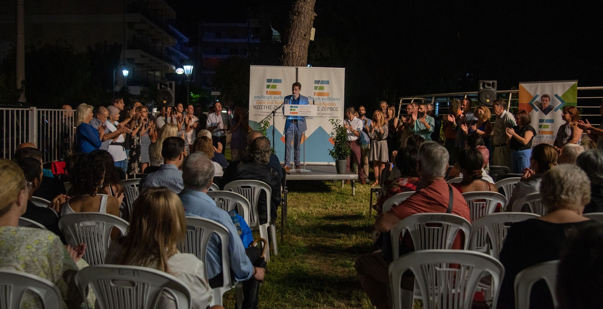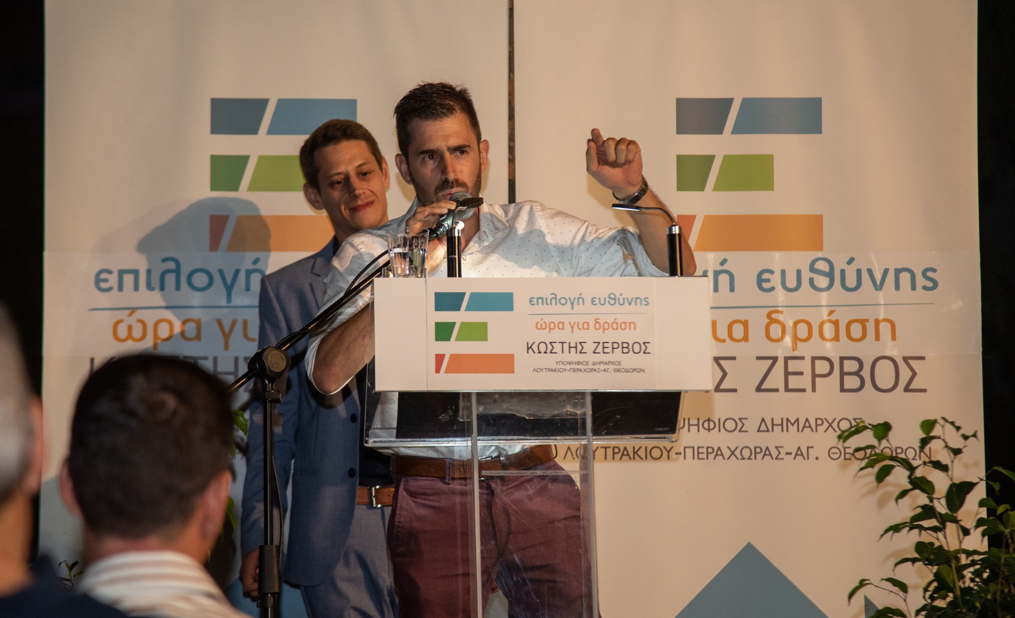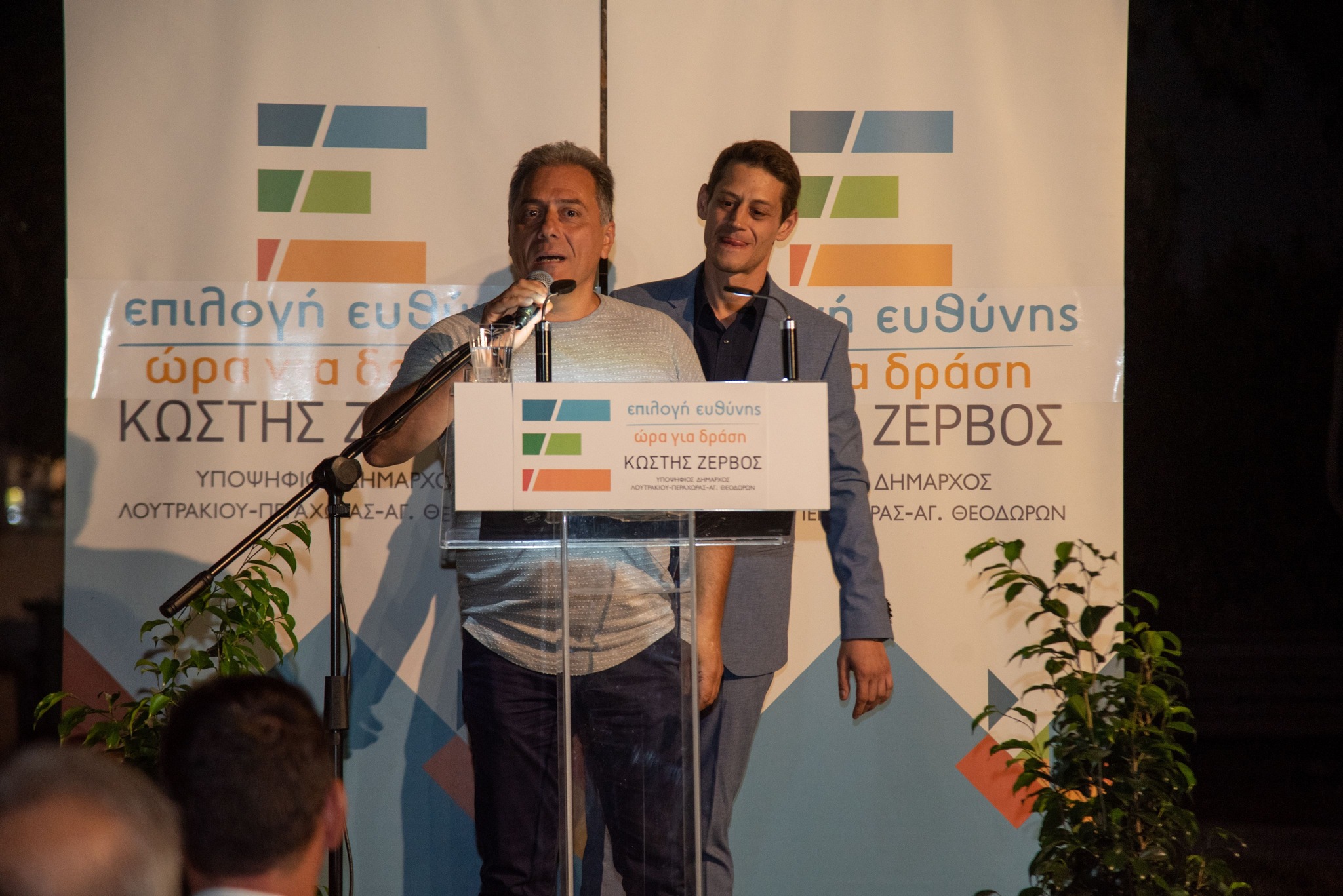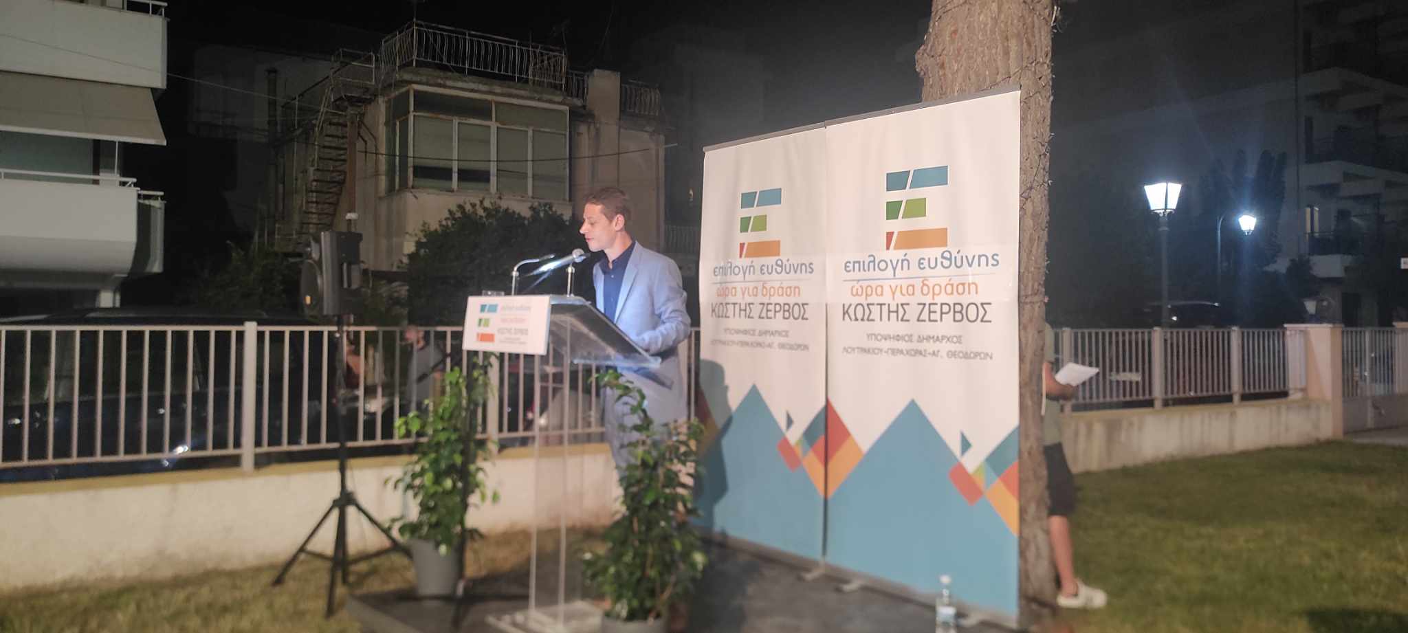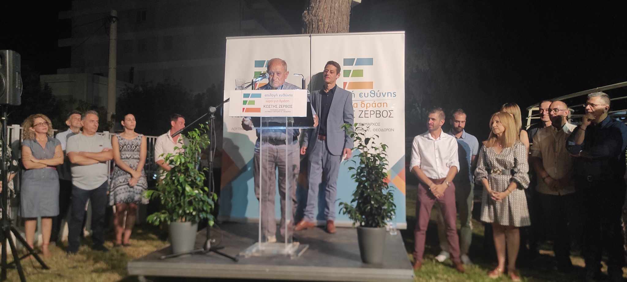Στον όμορφο προαύλιο χώρο της δημοτικής βιβλιοθήκης στο Λουτράκι, ο επικεφαλής του συνδυασμού ΕΠΙΛΟΓΗ ΕΥΘΥΝΗΣ-ΩΡΑ ΓΙΑ ΔΡΑΣΗ, Κωστής Ζερβός, υποψήφιος δήμαρχος του Δήμου Λουτρακίου-Π-Αγ.Θ., παρουσίασε τους υποψηφίους του συνδυασμού του!