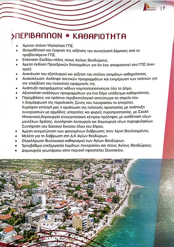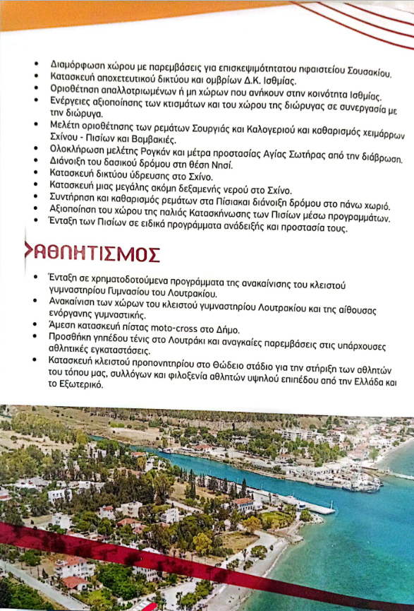 Από τη λαχτάρα της άκρατης υποσχεσιολογίας, της διέφυγε ότι αρκετά από αυτά που υπόσχεται έχουν γίνει, άλλα έχουν δρομολογηθεί και άλλα έχουν ήδη ξεκινήσει. Χαρακτηριστικά παραδείγματα η οριοθέτηση ρεμάτων, ο βιολογικός των Αγίων Θεοδώρων, η ανάπλαση του παραλιακού μετώπου…
