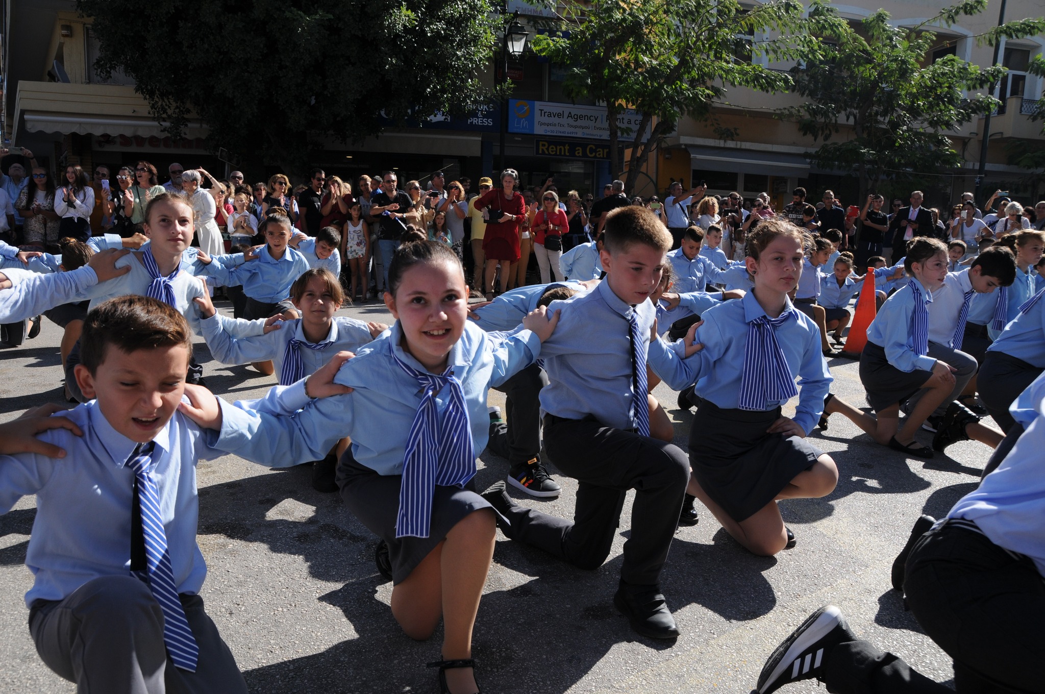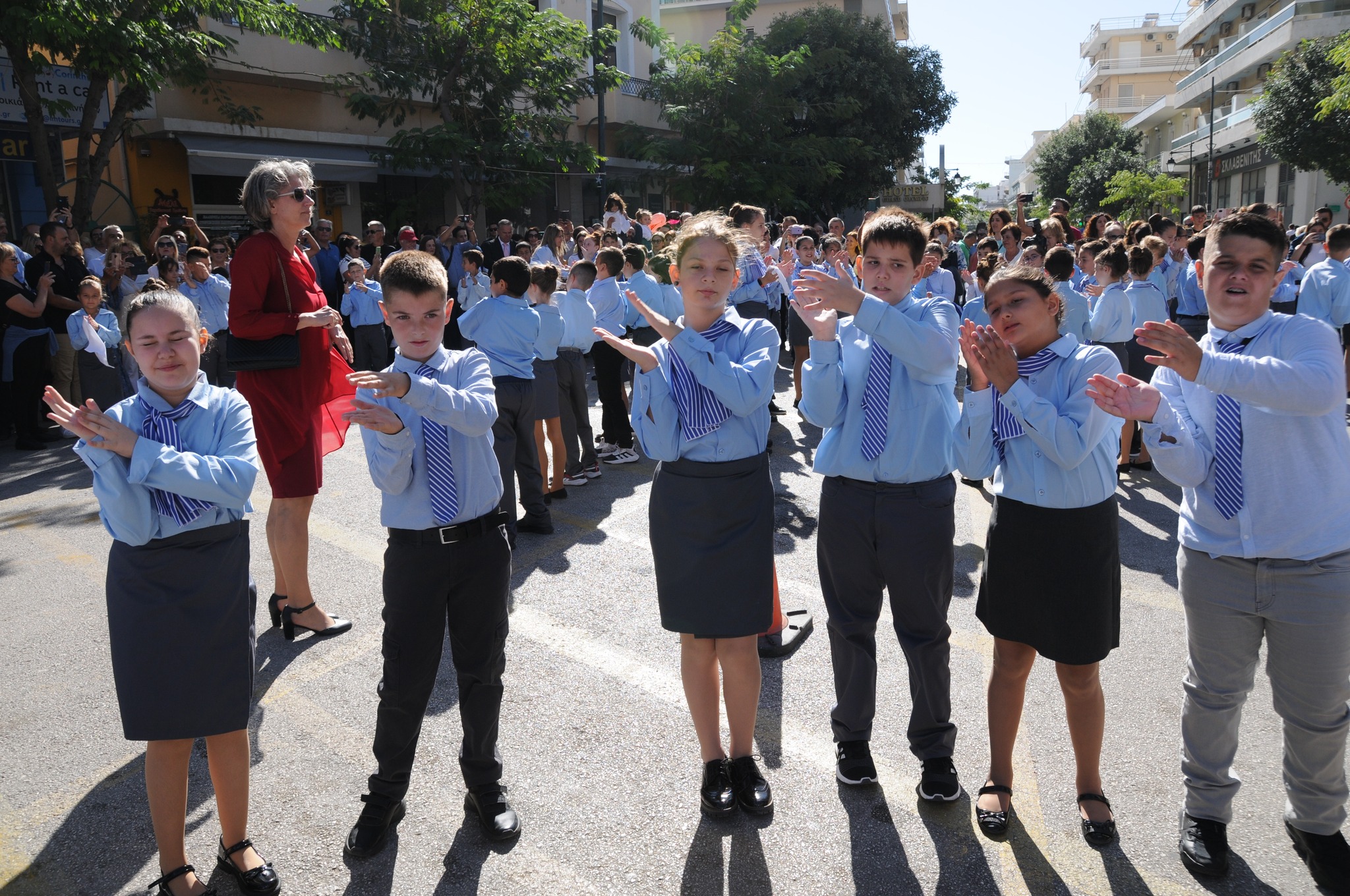 Μετά την παρέλαση οι μαθητές του 1ου δημοτικού σχολείου Λουτρακίου χόρεψαν παραδοσιακούς χορούς.