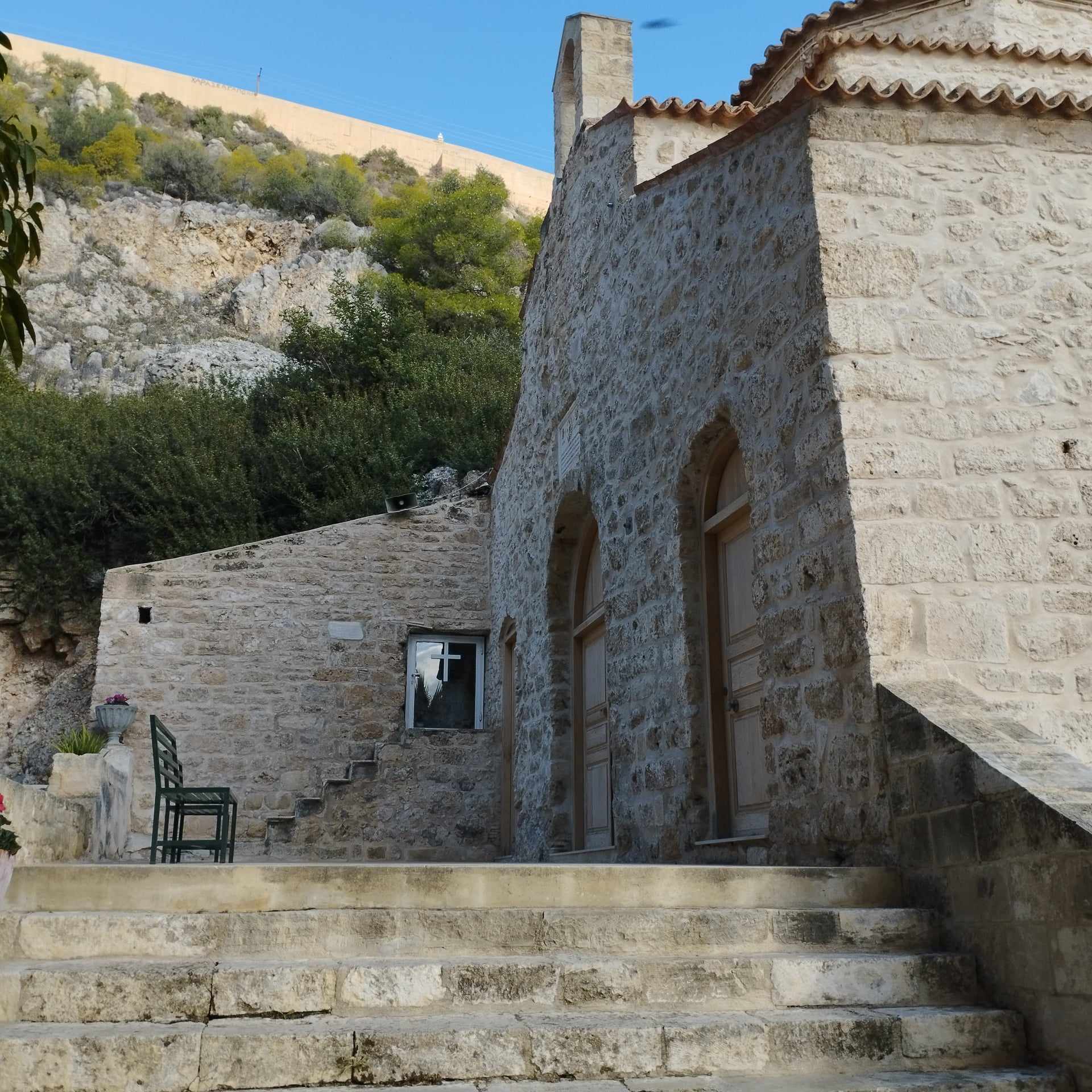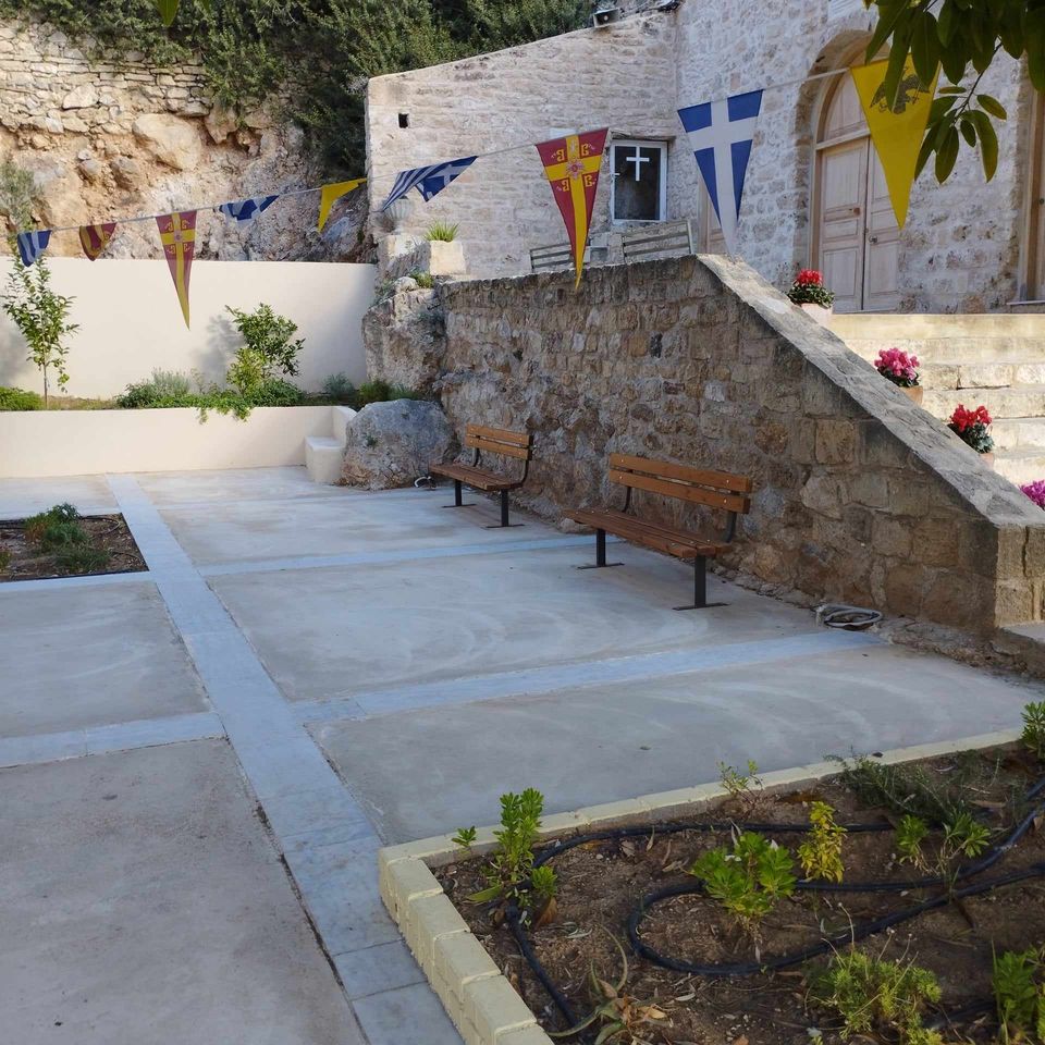 Στη βόρεια πλευρά του προαυλίου υπάρχουν σκαλοπάτια που οδηγούν στο στόμιο της σπηλιάς, όπου κρύφτηκε ο Άγιος Ανδρέας καταδιωκόμενος από Ρωμαίους στρατιώτες.