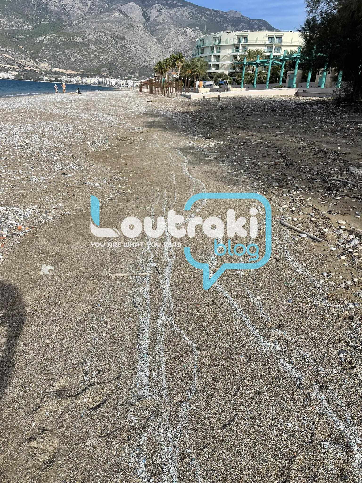 Θλίψη παρουσιάζει η χθεσινή εικόνα της παραλίας στο Λουτράκι! Χιλιάδες πλαστικά κομμάτια έχουν κατακλύσει την ακτή!